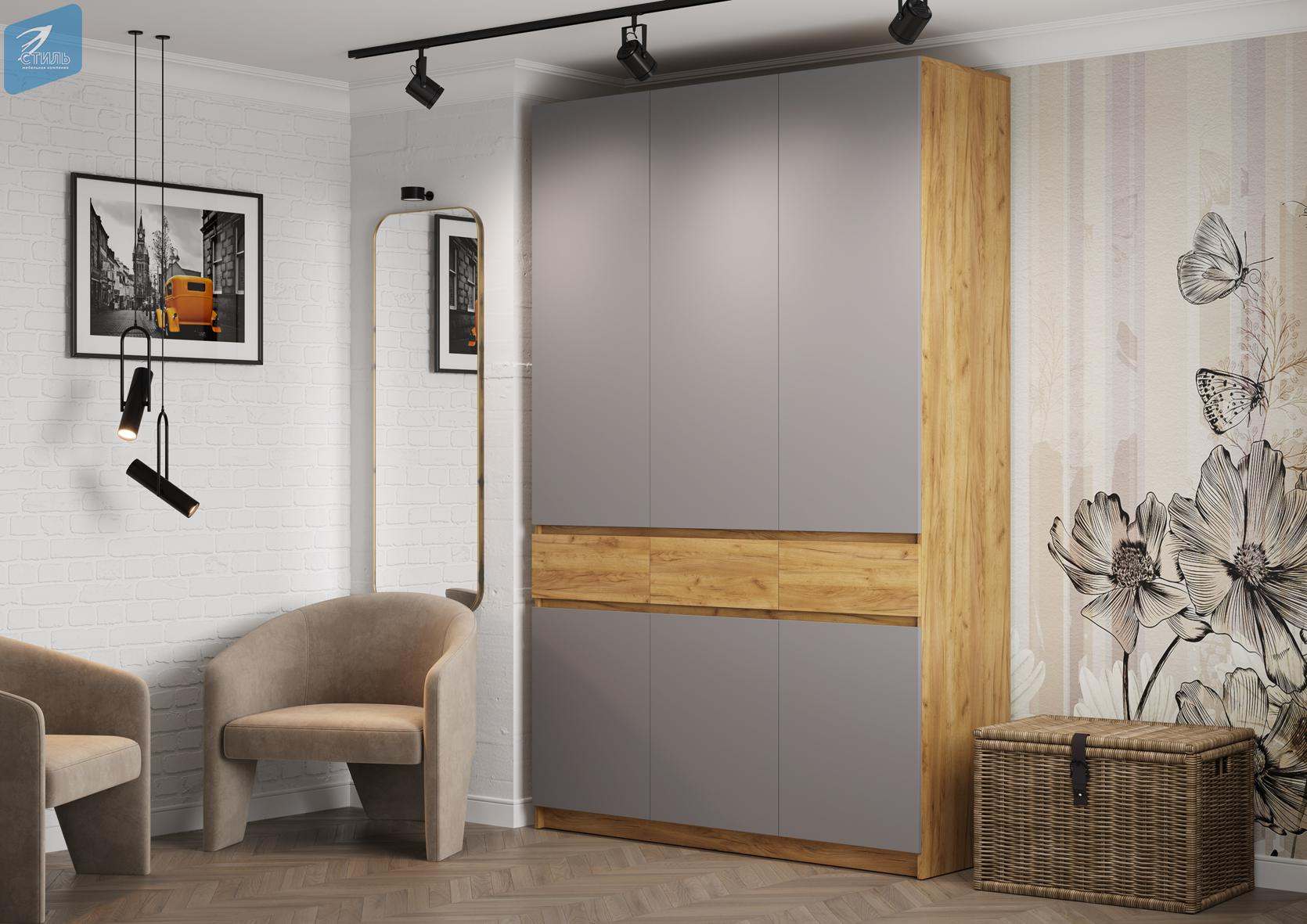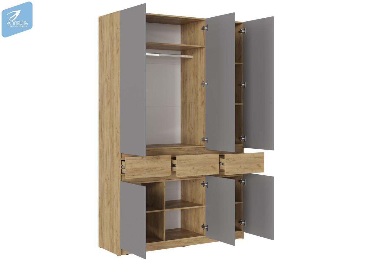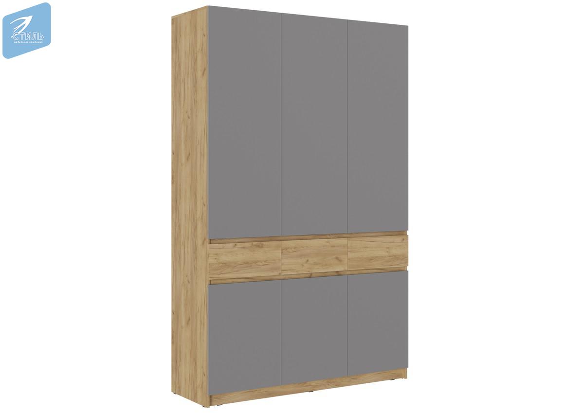 Шкаф трехстворчатый ШК-002 «Бостон» Дуб крафт золотой/Серый шифер
