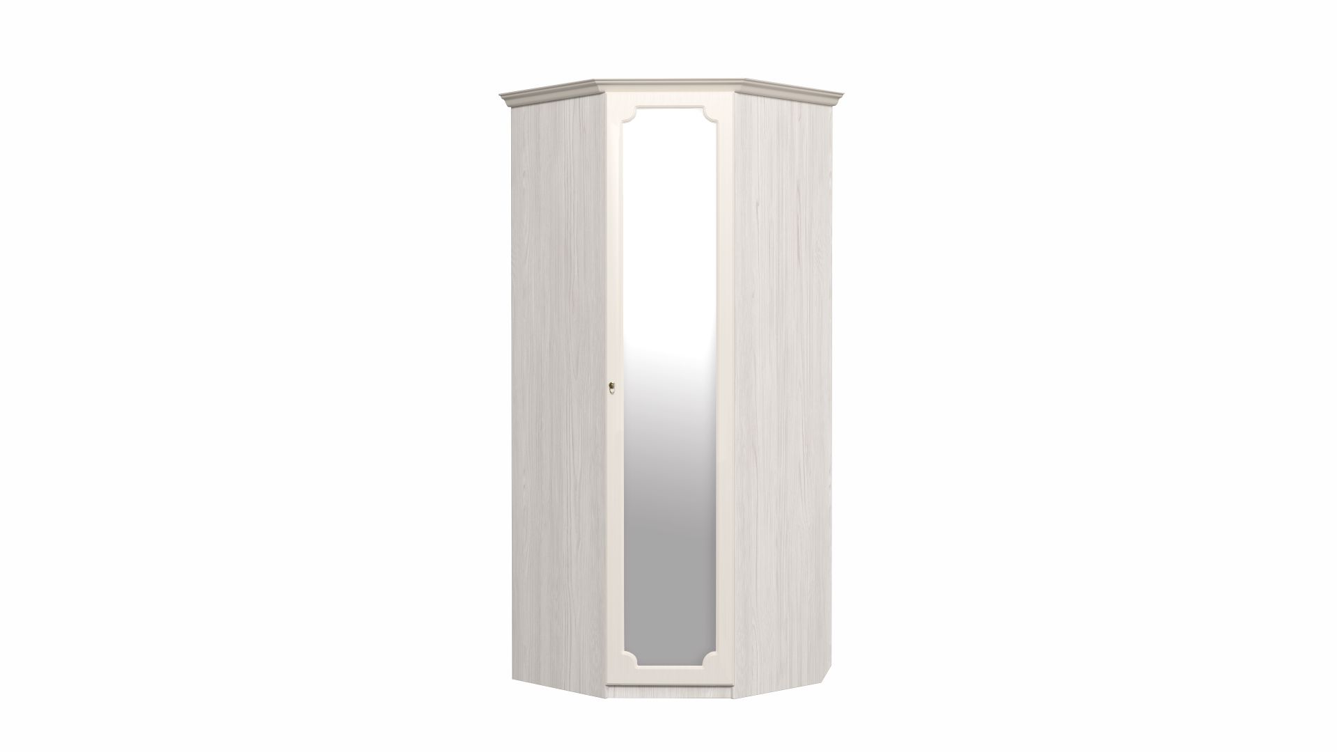 Шкаф угловой с зеркалом «Ивушка-5» Сандал белый/Рамух