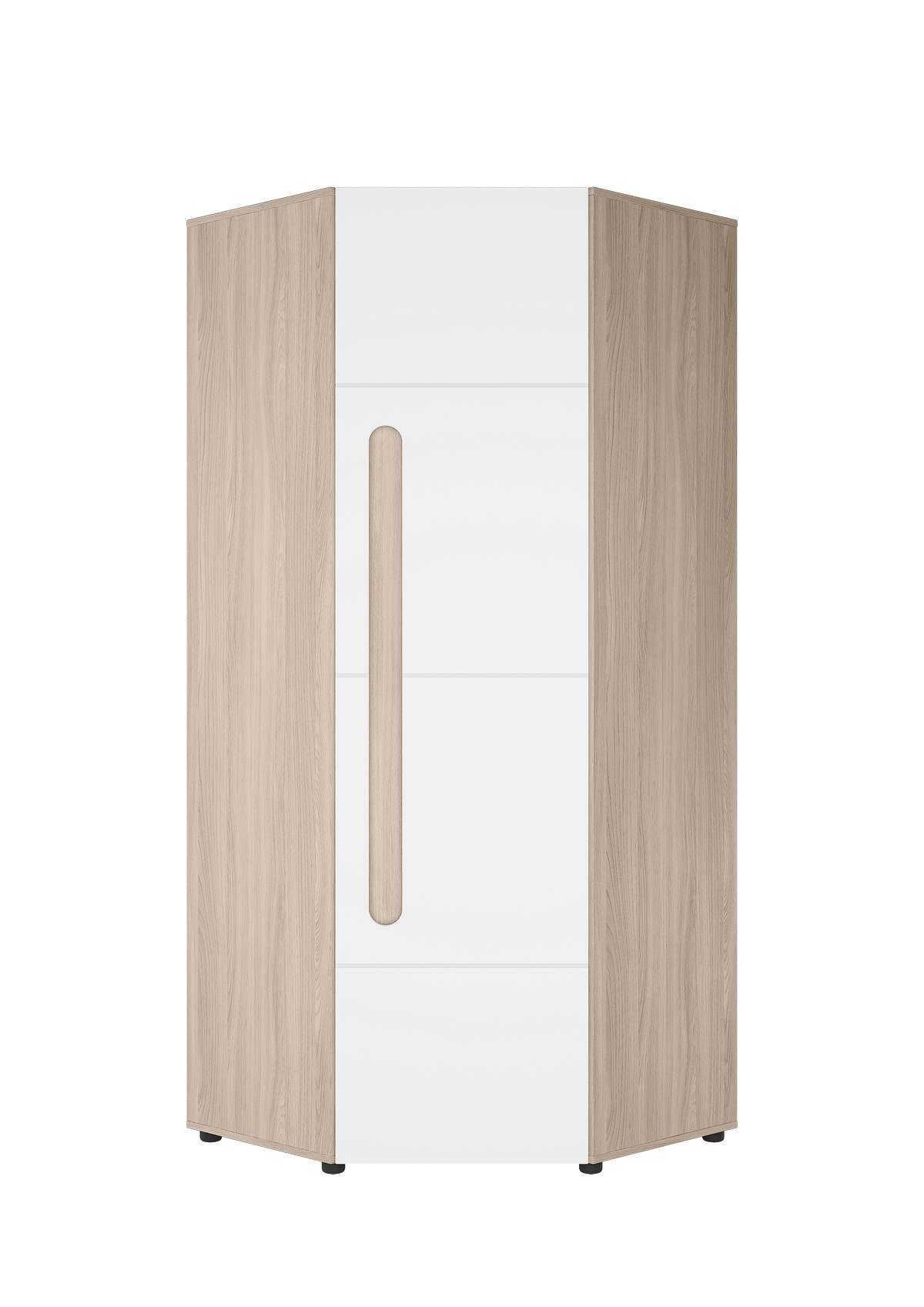 Шкаф угловой ШК-013 «Палермо-3» Ясень шимо светлый/МДФ Белый глянец