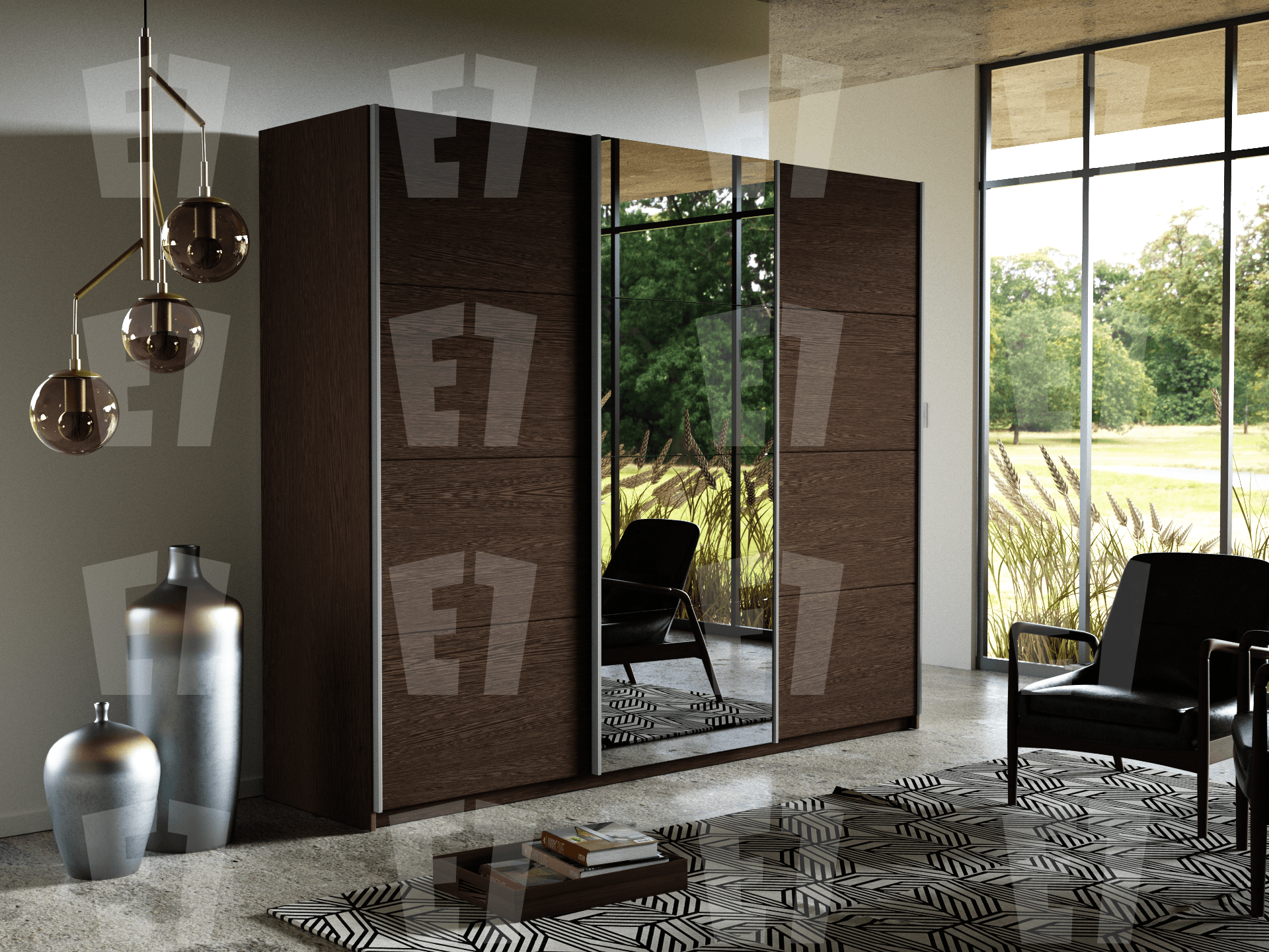 Шкаф-купе 3-х дверный «Прайм» ДСП/Зеркало/ДСП/Венге
