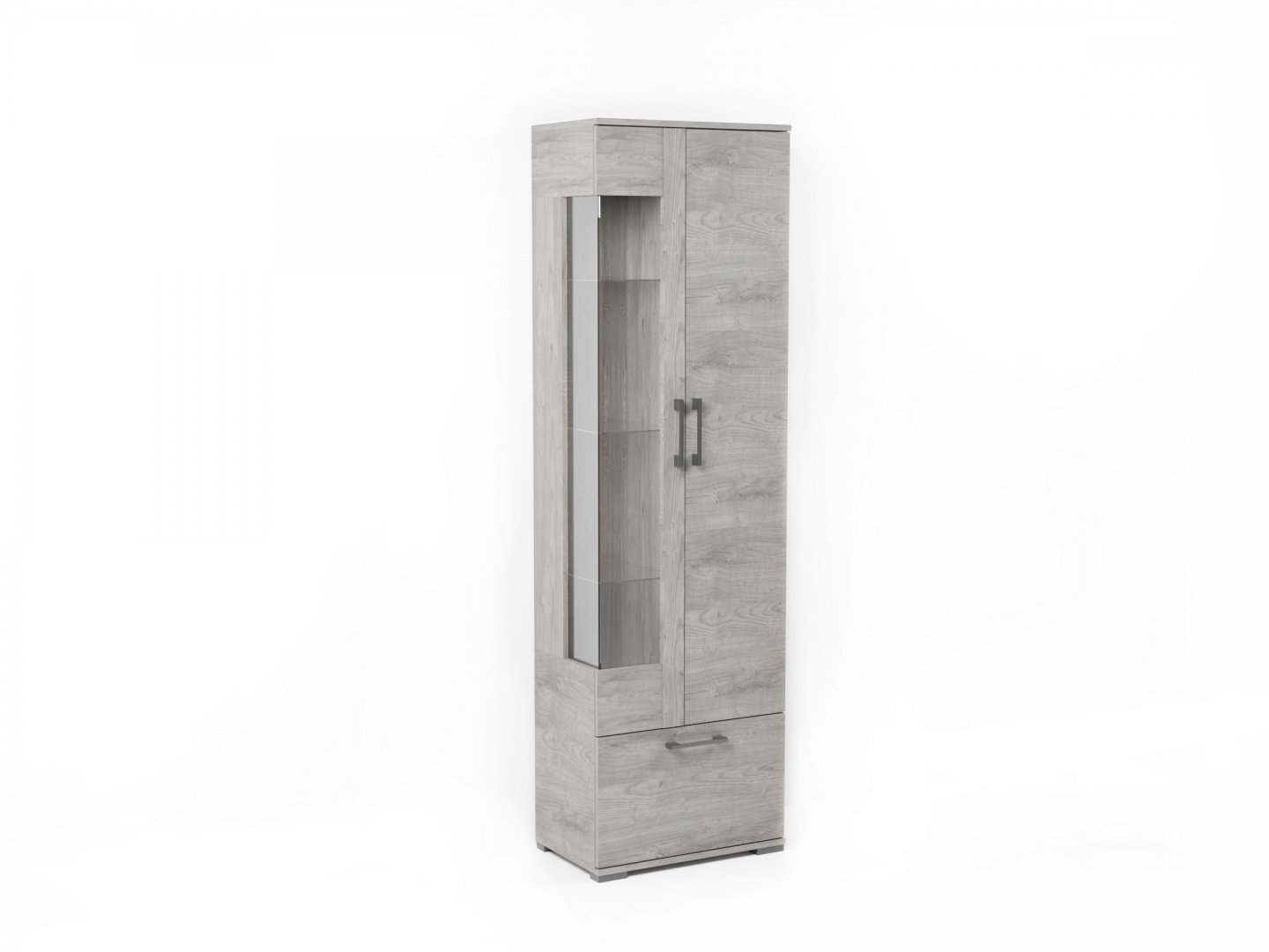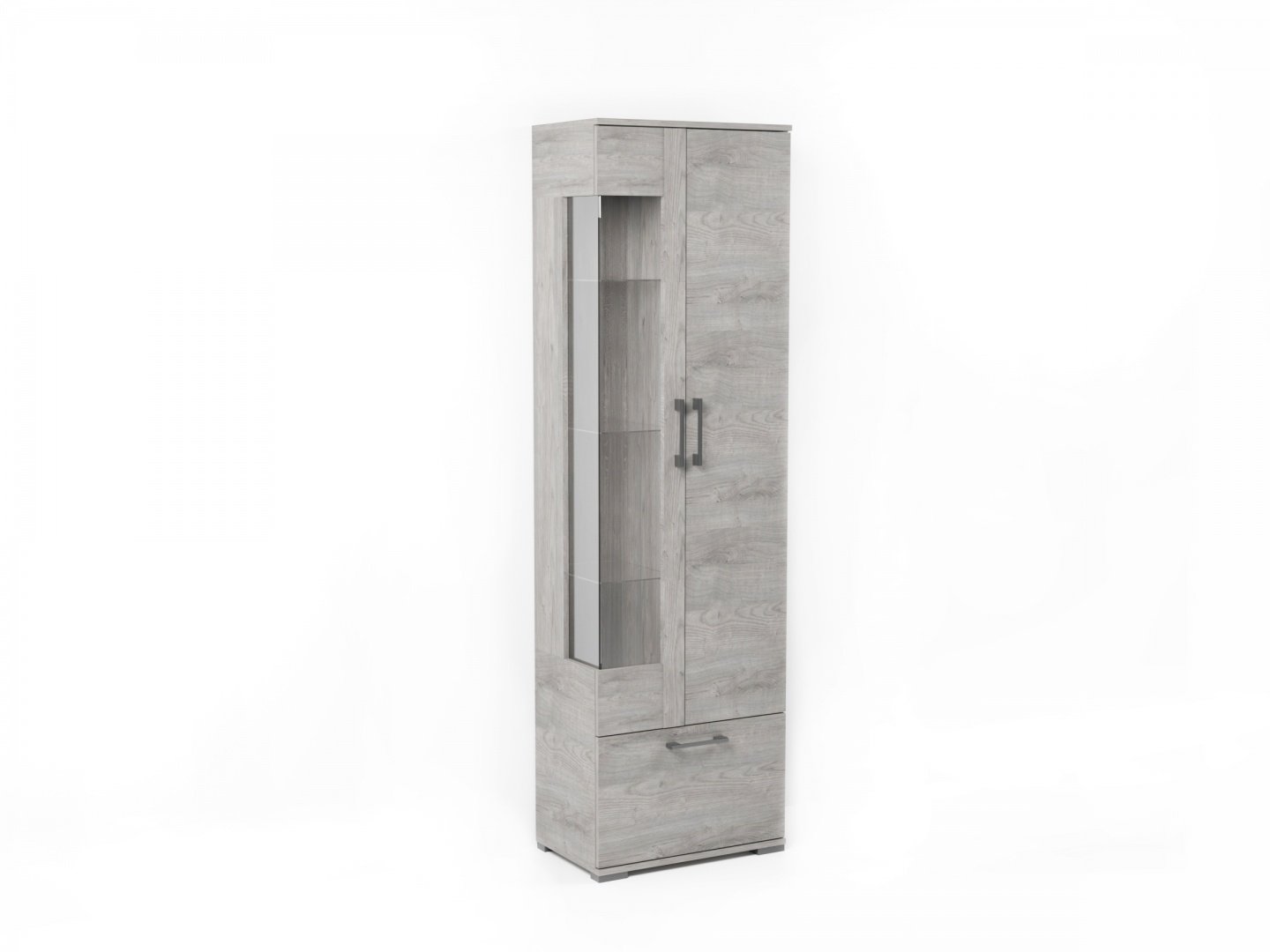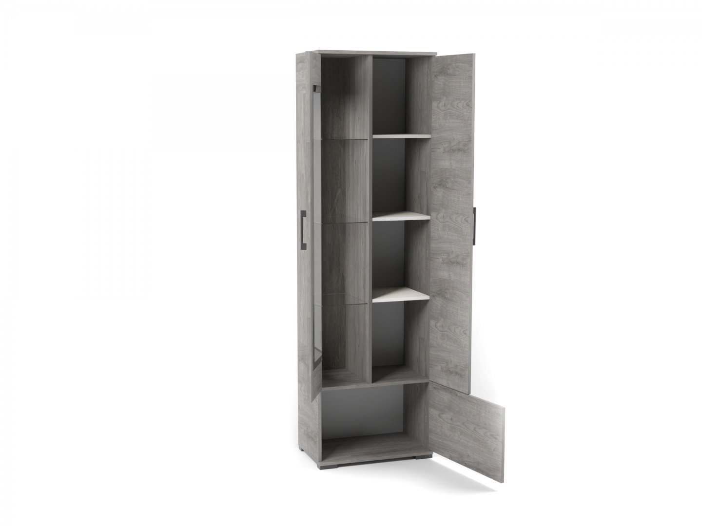 - Шкаф-пенал «Денвер» со стеклом правый Риббек серый/Камень темный