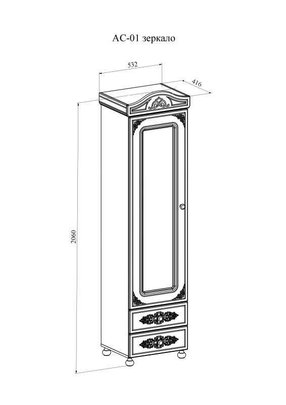 - Шкаф-пенал с зеркалом «Ассоль» АС-1 Белое дерево