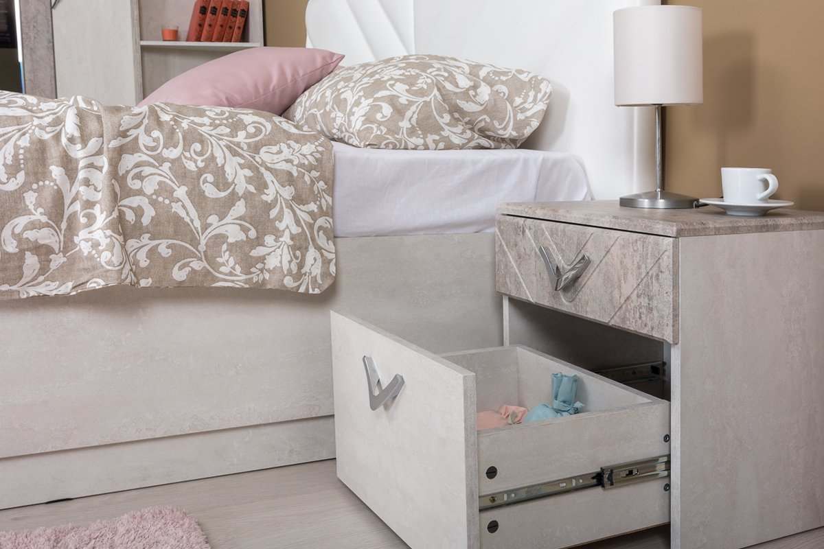 Тумба прикроватная 13.78 «Амели» Шёлковый камень/Бетон Чикаго беж