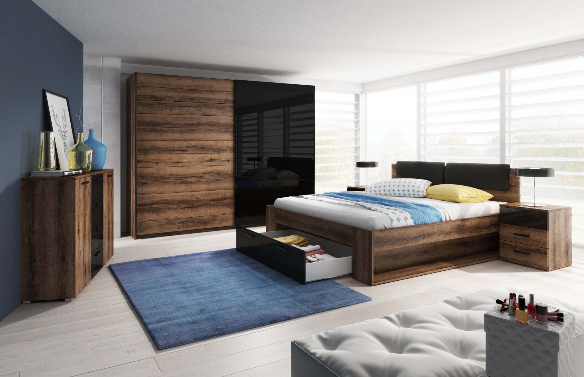 Спальня «Galaxy» 24ZBEA Дуб Monastery/Черное стекло