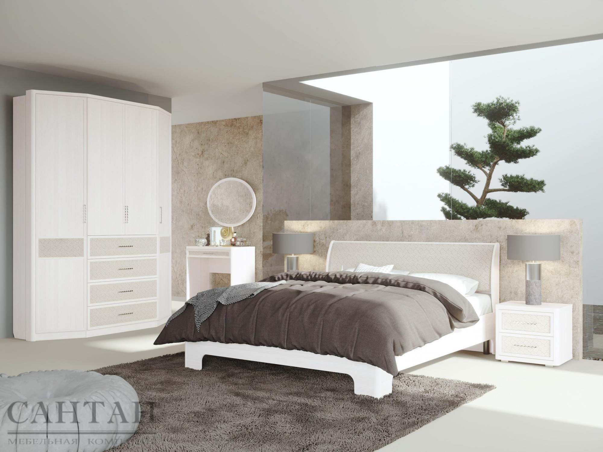 | Комплектация | Со шкафом, С туалетным столиком, С прикроватными тумбочками |