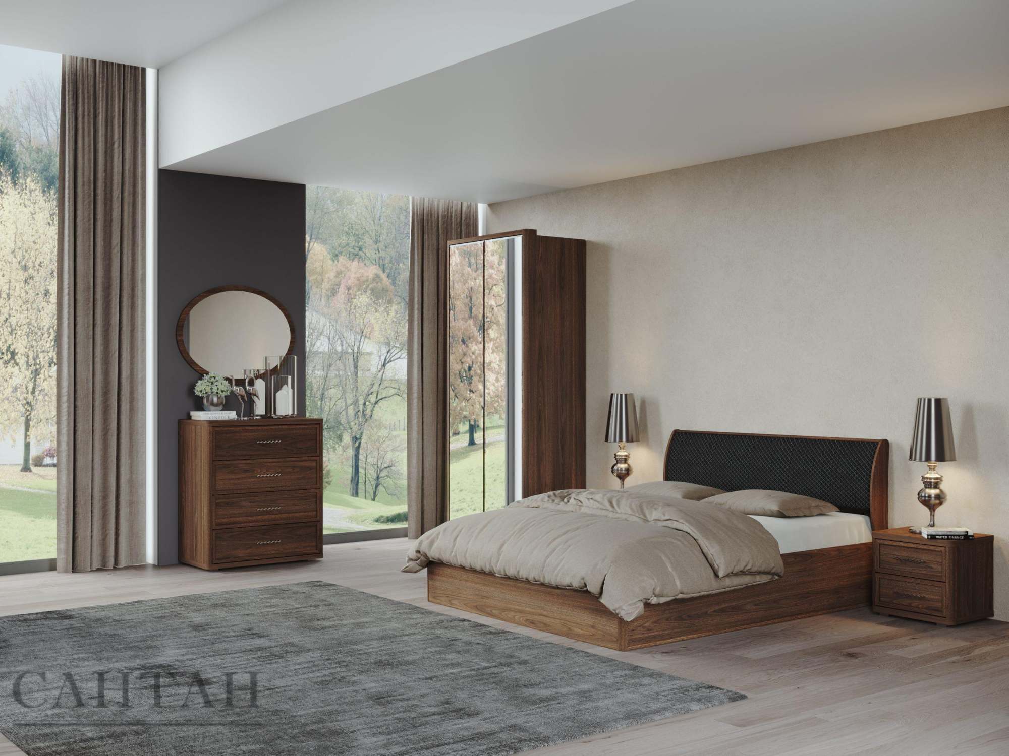 | Комплектация | С комодом, Со шкафом, С прикроватными тумбочками |
