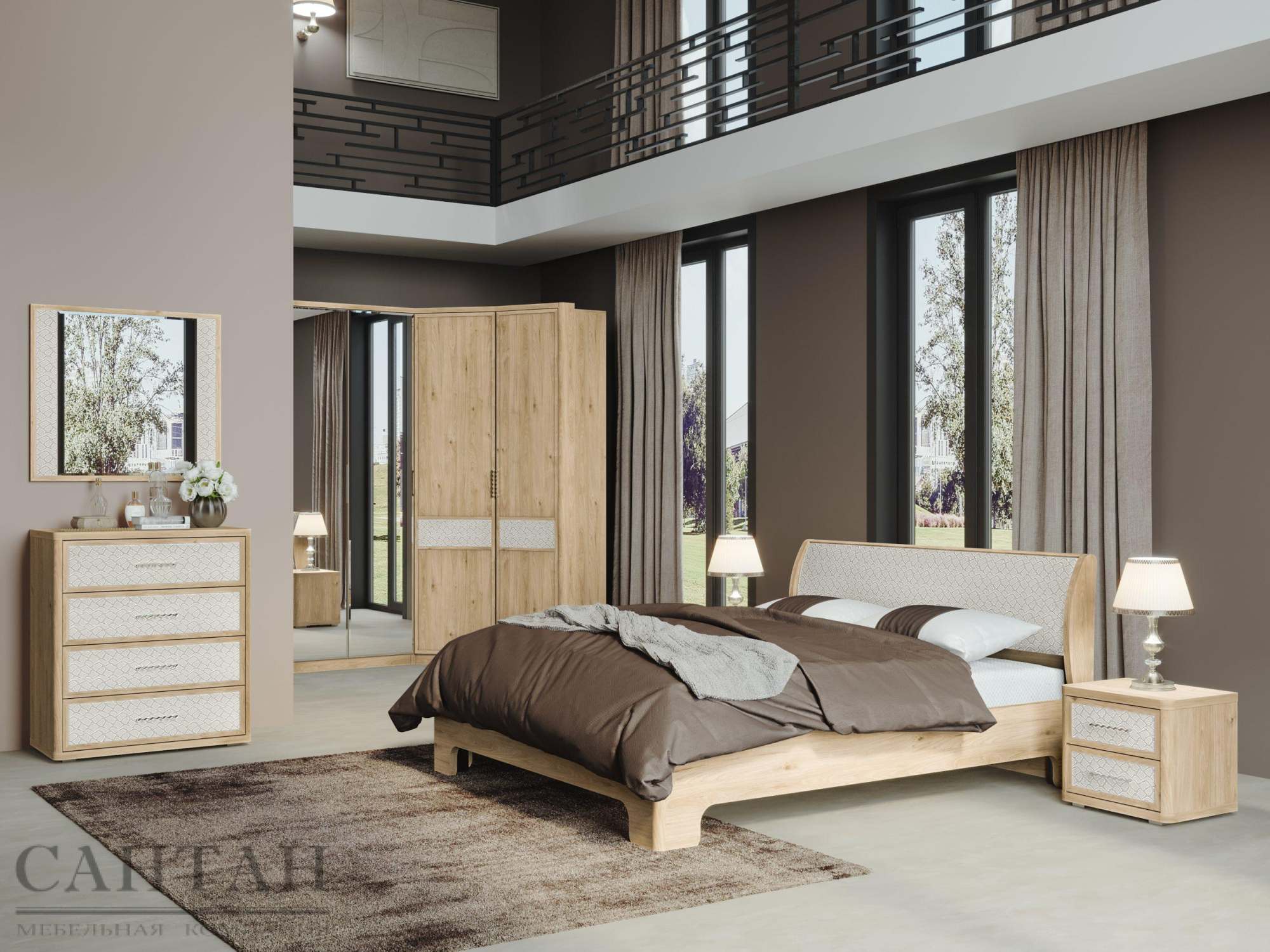 Спальня «Камелия Monro 5» Гикори Джексон светлый/Matrixmat b020
