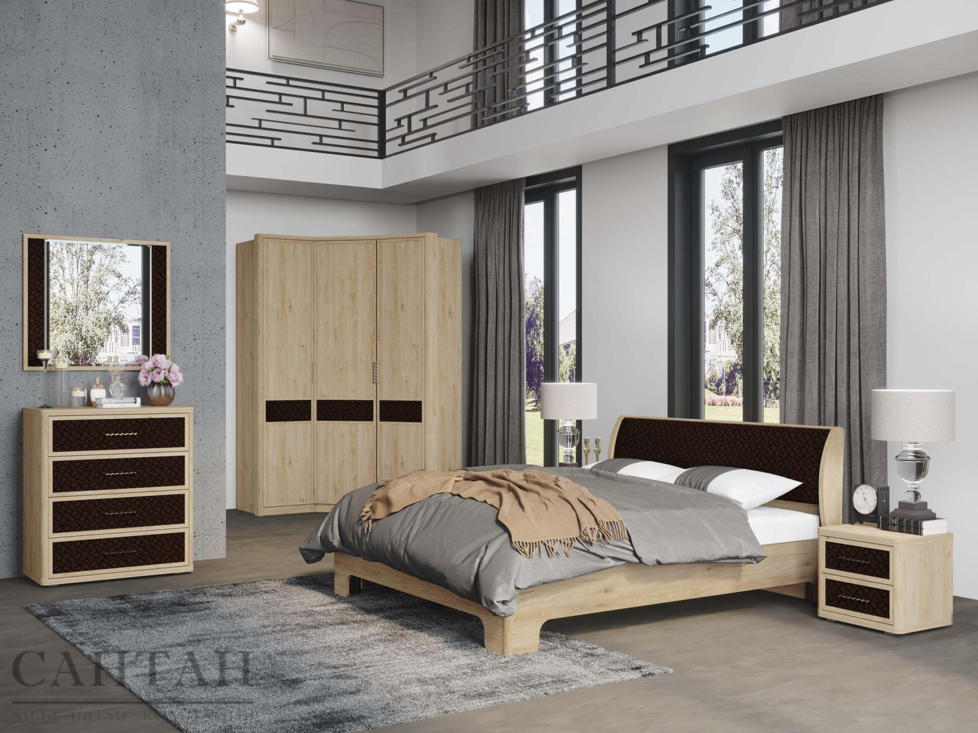 Спальня «Камелия Monro 7» Гикори Джексон светлый/Matrixmat 3117