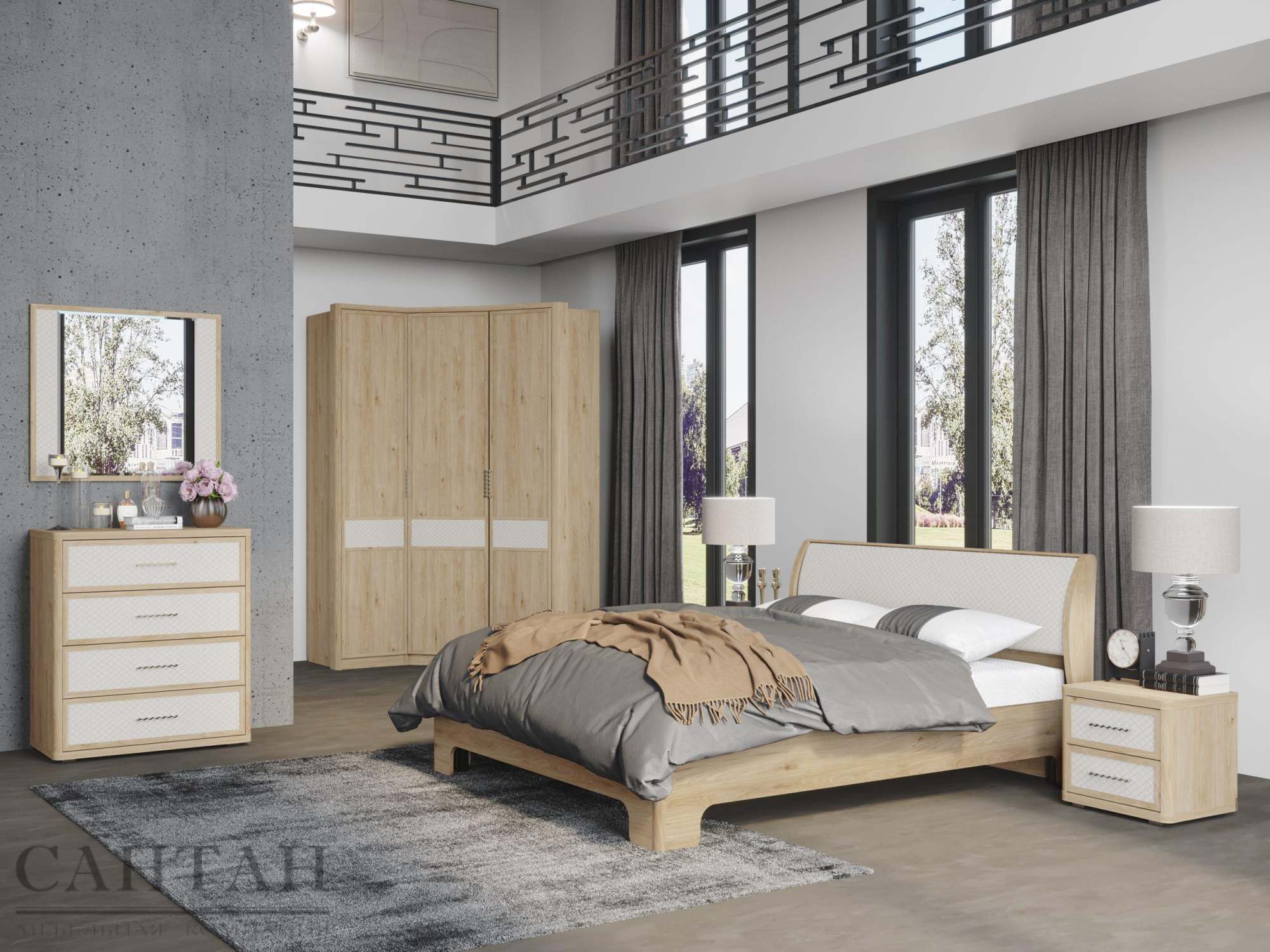 Спальня «Камелия Monro 7» Гикори Джексон светлый/Matrixmat Monro 5