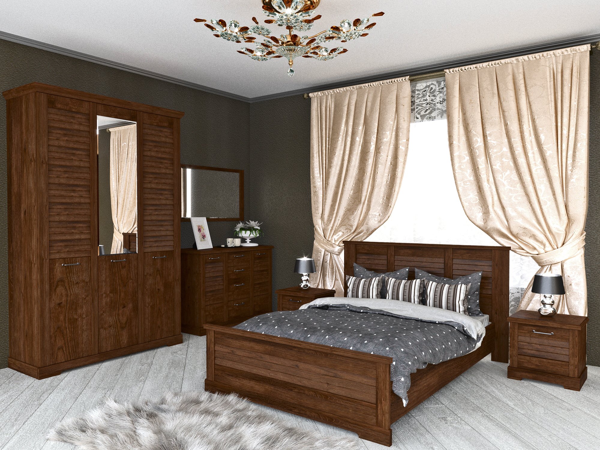 Спальня «Кантри» Орех Рибек темный