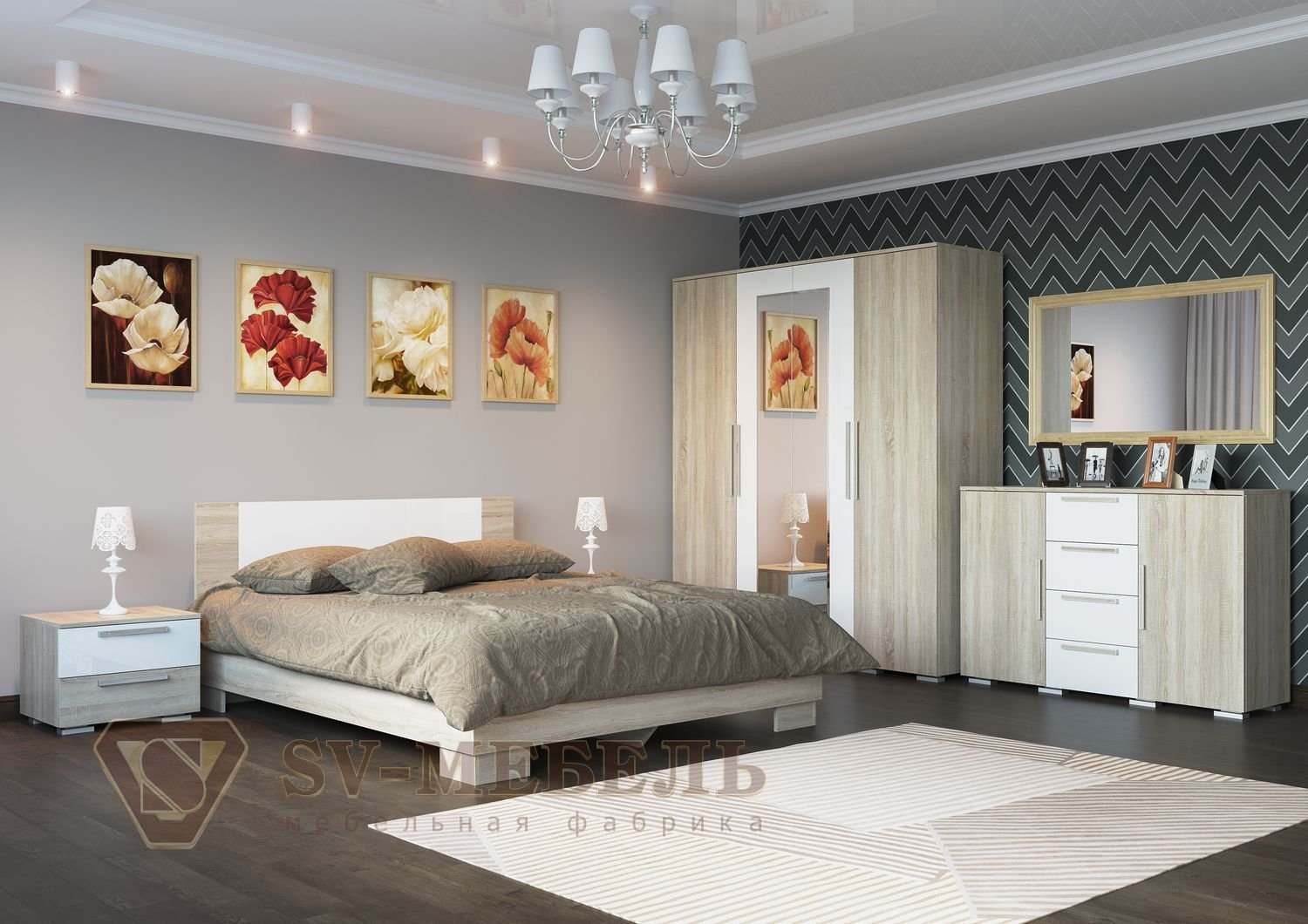 Спальня «Лагуна-2» Дуб Сонома/Белый глянец