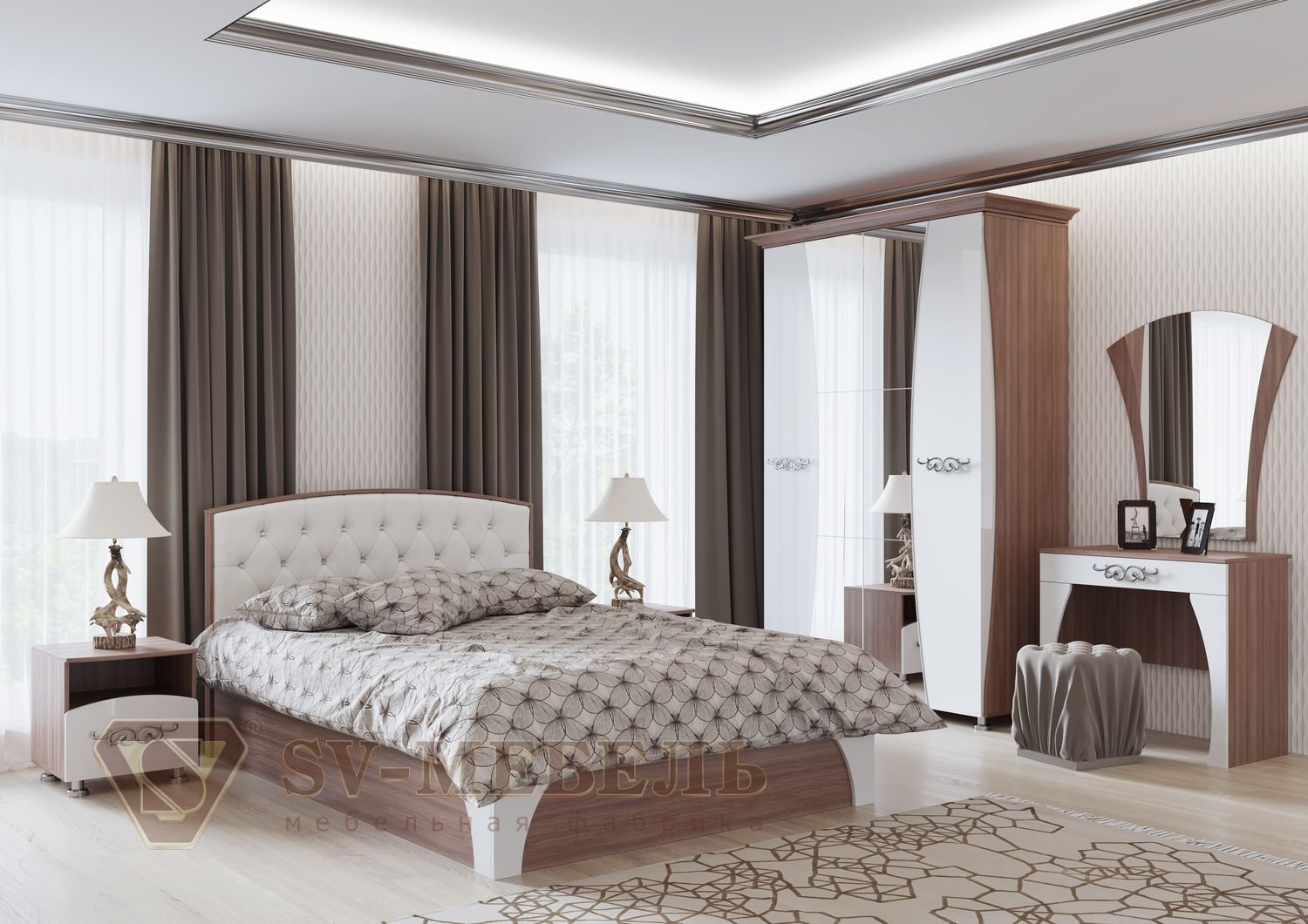 | Комплектация | Со шкафом, С туалетным столиком, Для маленькой спальни, С прикроватными тумбочками |