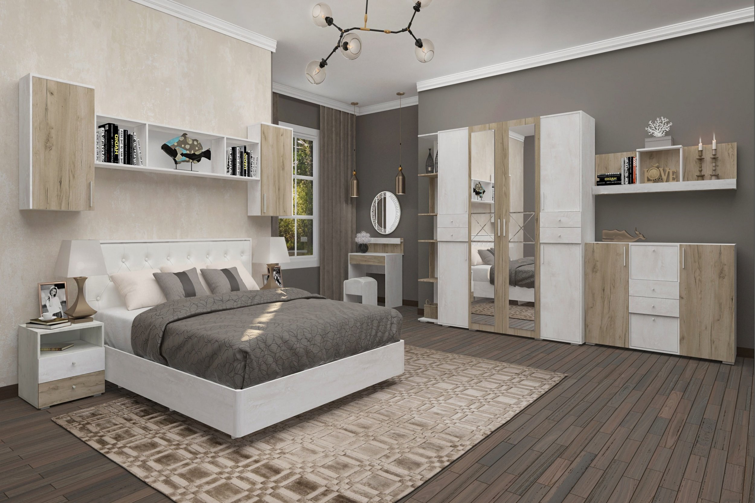 | Комплектация | С комодом, С полками, Со шкафом, Трансформеры, С туалетным столиком, С прикроватными тумбочками |