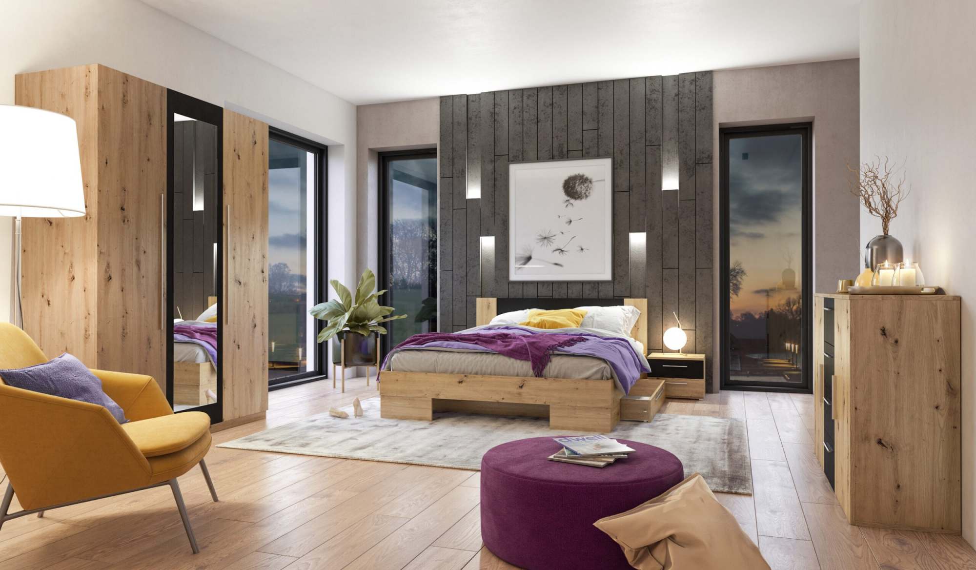 Спальня «Vera» 22RCDH Дуб Artisan/Черный