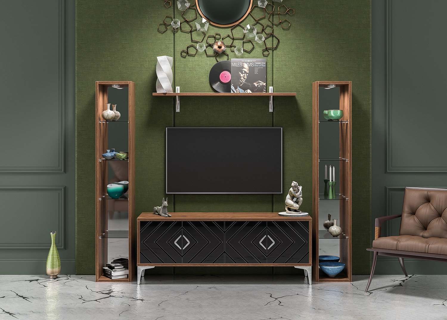Стеллаж 13.147 «Муар» Орех Селект каминный