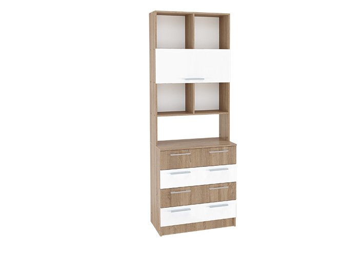 Стеллаж с ящиками «11» С-7 Дуб Сонома светлый/МДФ Белый глянец