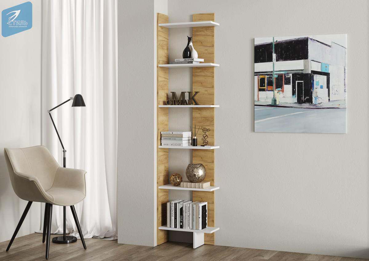 Стеллаж угловой 6 «Стиль» Дуб крафт золотой/Белый гладкий