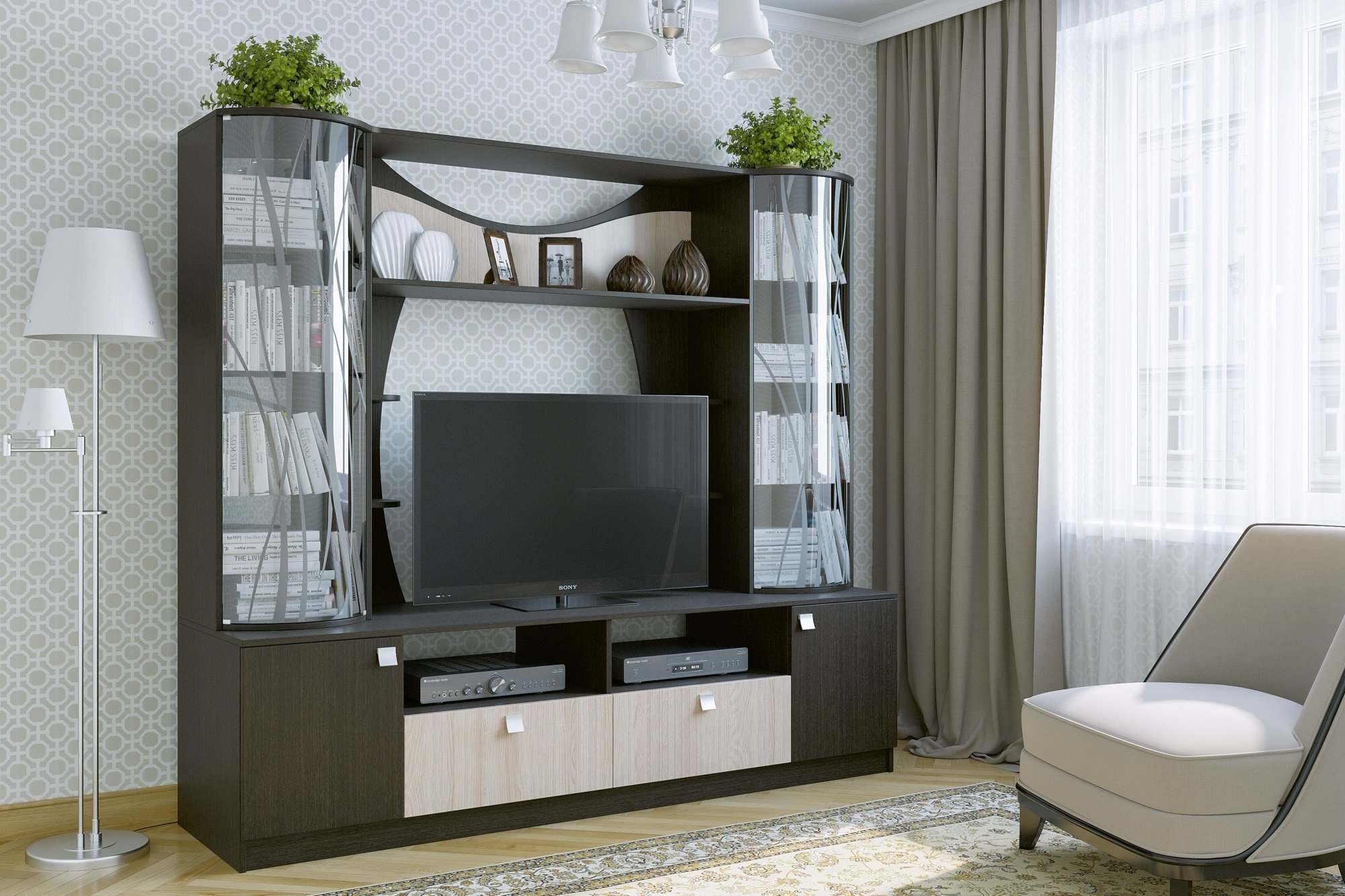 Стенка с тумбой для ТВ «Гамма-15» Венге/Дуб млечный