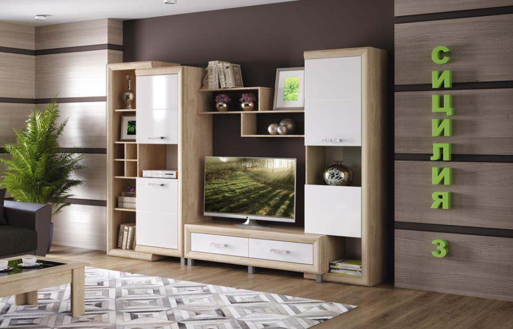 Стенка «Сицилия» 3 Дуб сонома белый лянец