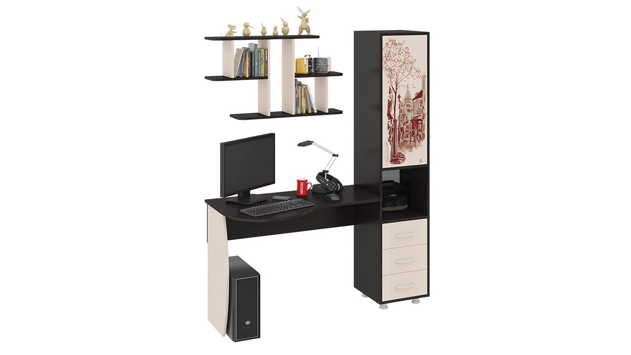 Стол компьютерный «Гимназист М» (комплект с полкой) (с рисунком венге цава/дуб молочный)