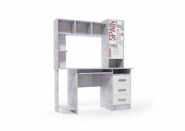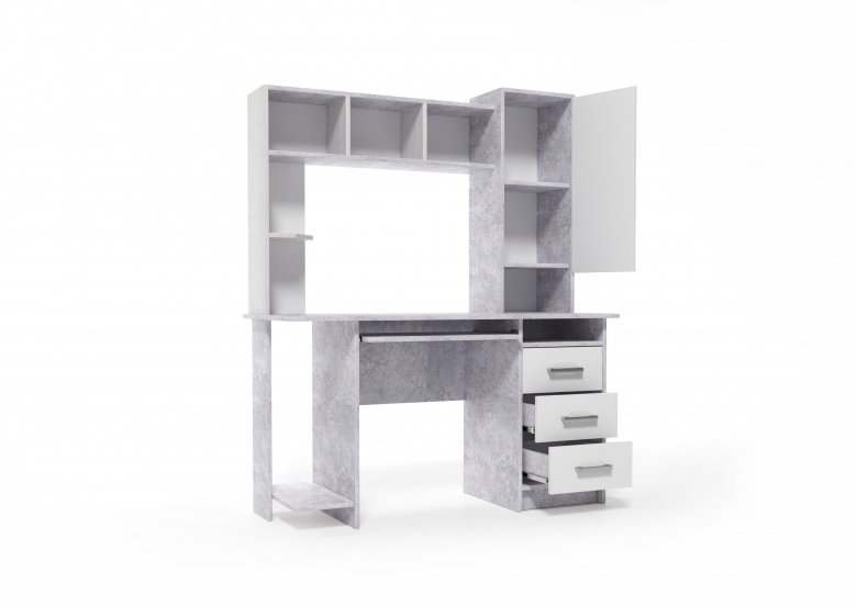 Стол компьютерный «6» Цемент светлый/Белый