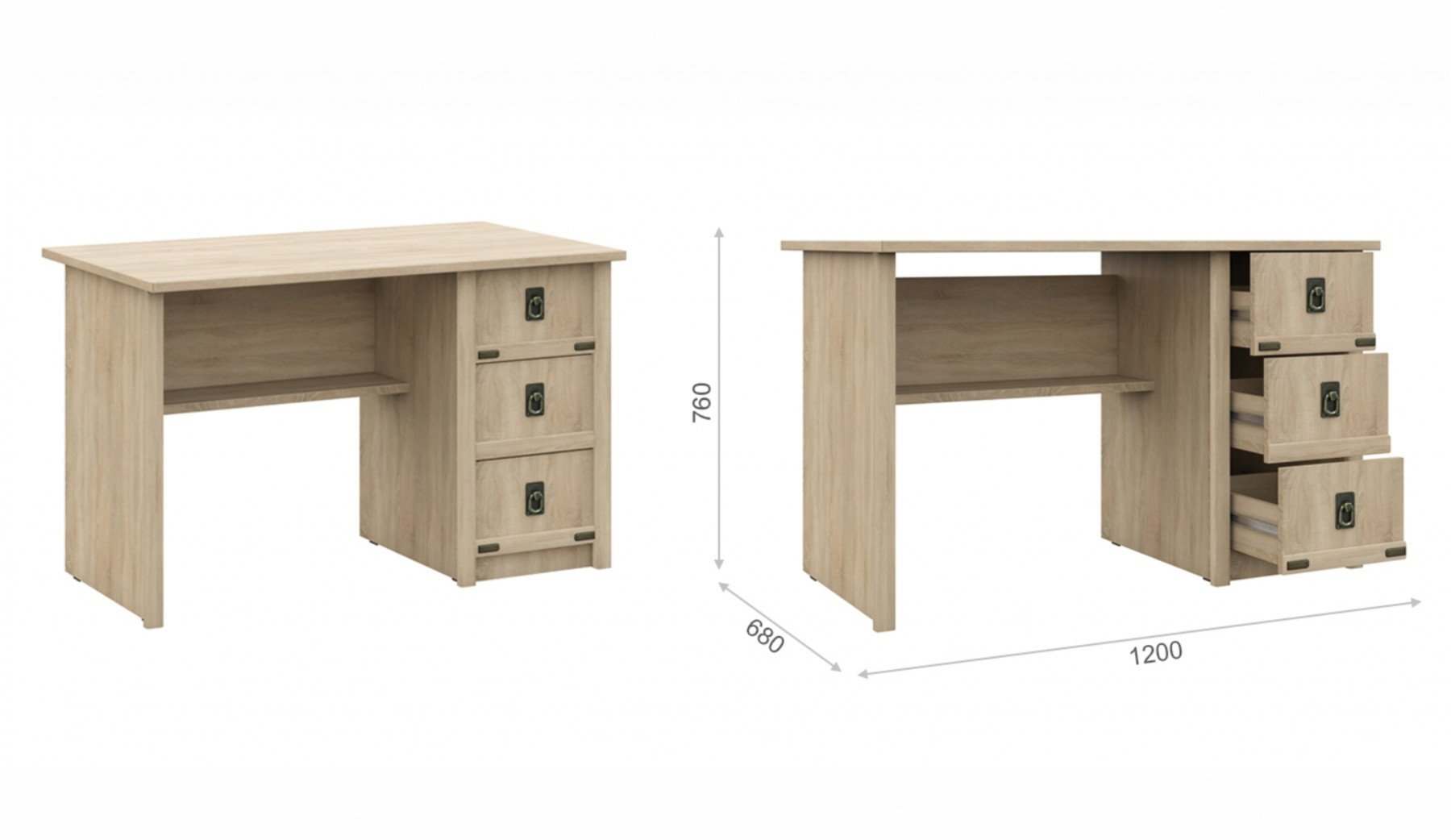 Стол письменный 3 ящика «Валенсия» Дуб сонома