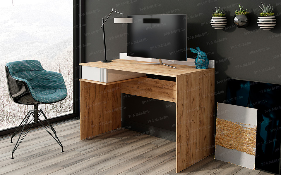 Стол письменный «Джамп» Дуб вотан/Белый глянец