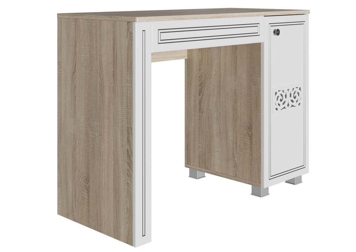 Стол туалетный с подъемной столешницей с зеркалом «Мадлен» Дуб Сонома светлый/МДФ Ясень белый эмаль матовый