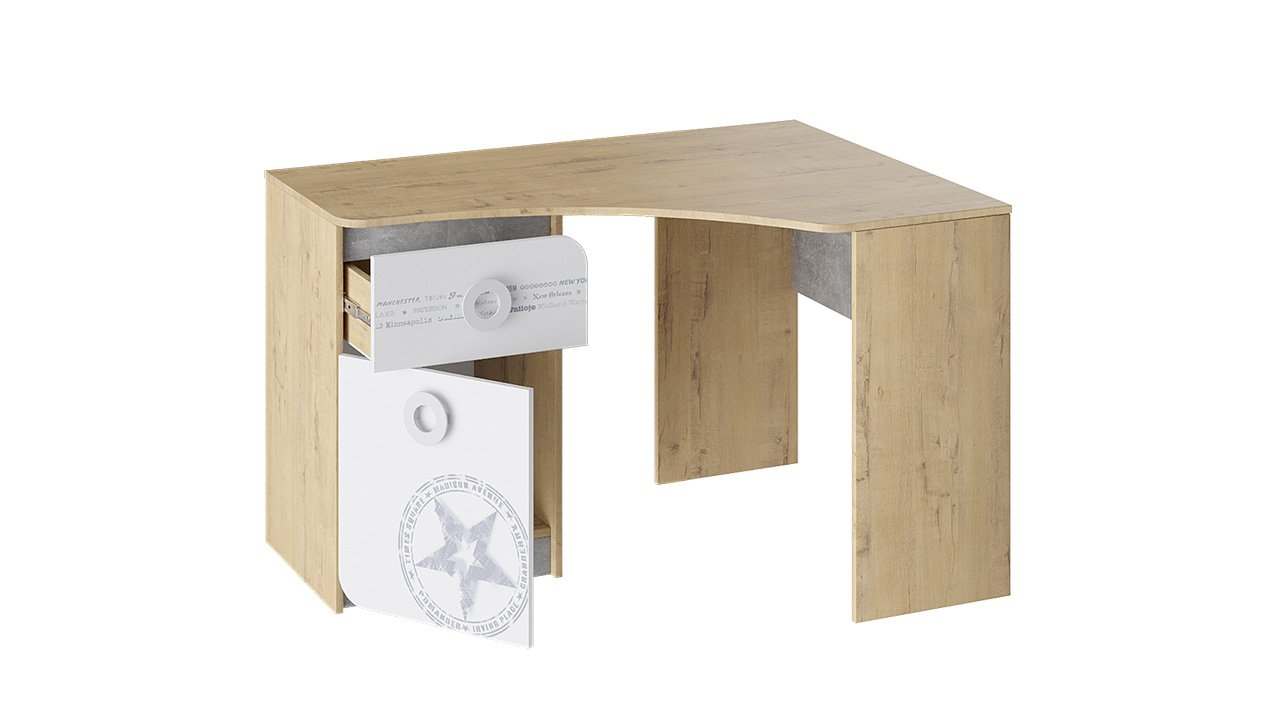 Стол угловой «Мегаполис» (Бунратти/Белый с рисунком)