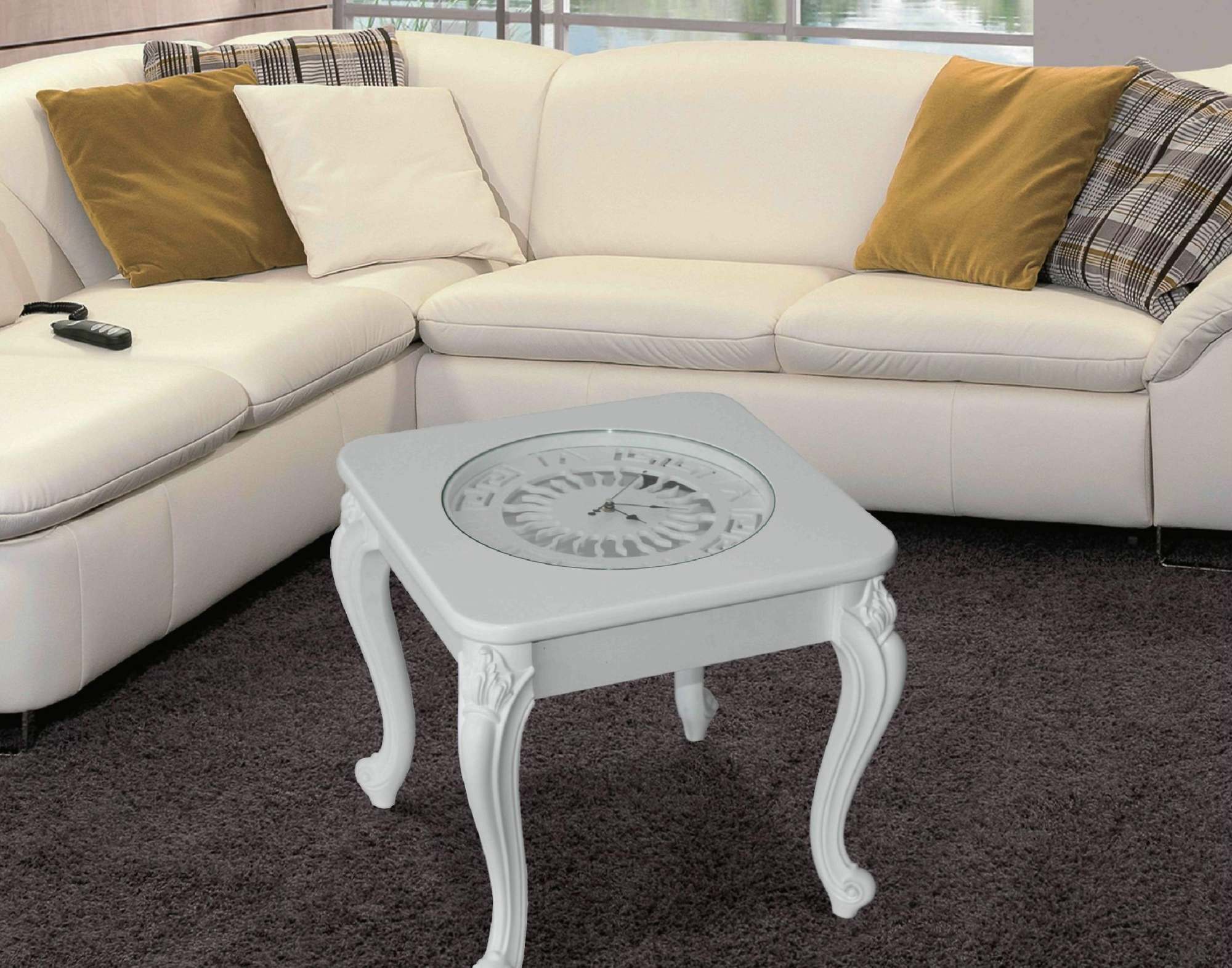 Столик журнальный «Часы» МДФ Белый/Стекло