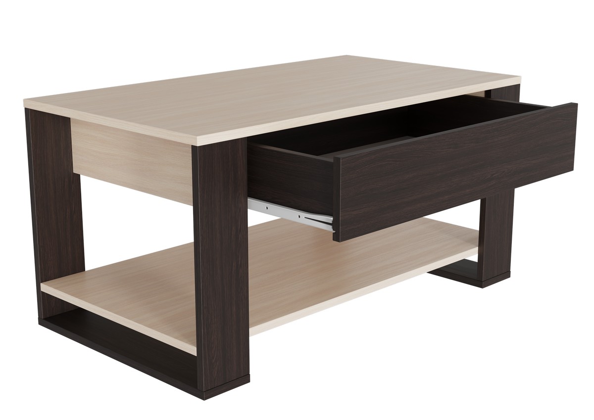 Стол журнальный номер 12 с ящиком «Стиль» Дуб молочный/Венге
