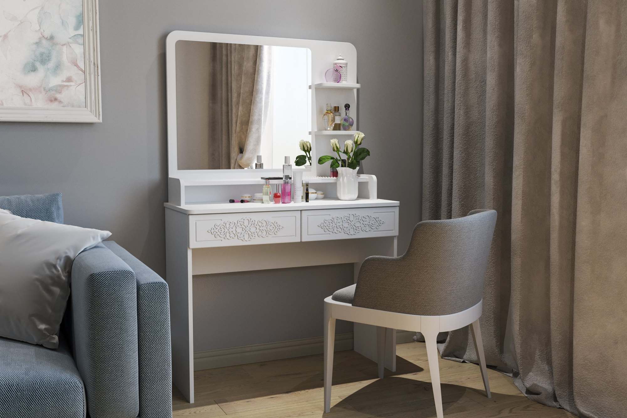 Туалетный столик с зеркалом «ТС-25 ТН-3» белое дерево