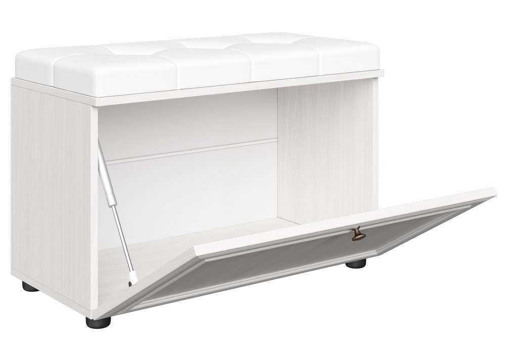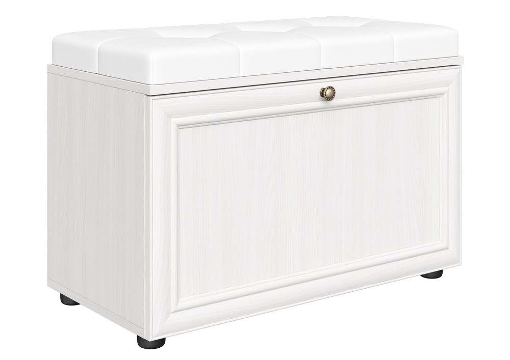 Тумба для обуви «Оскар-7А» Ясень Анкор светлый/Кожзам Белый
