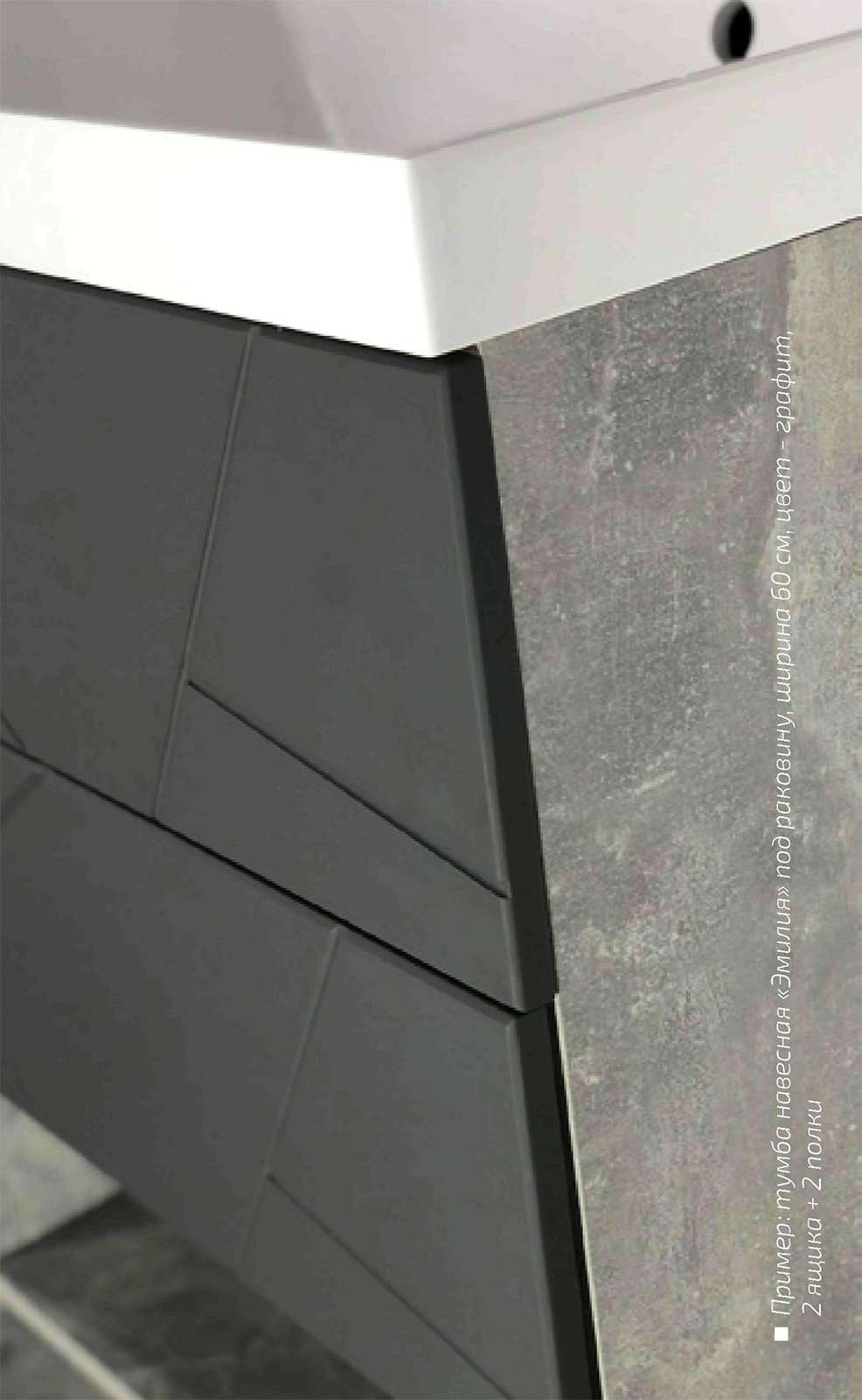 Тумба навесная под раковину «Эмилия» Ателье светлый/Графит софт 50/60/70/80/90 см