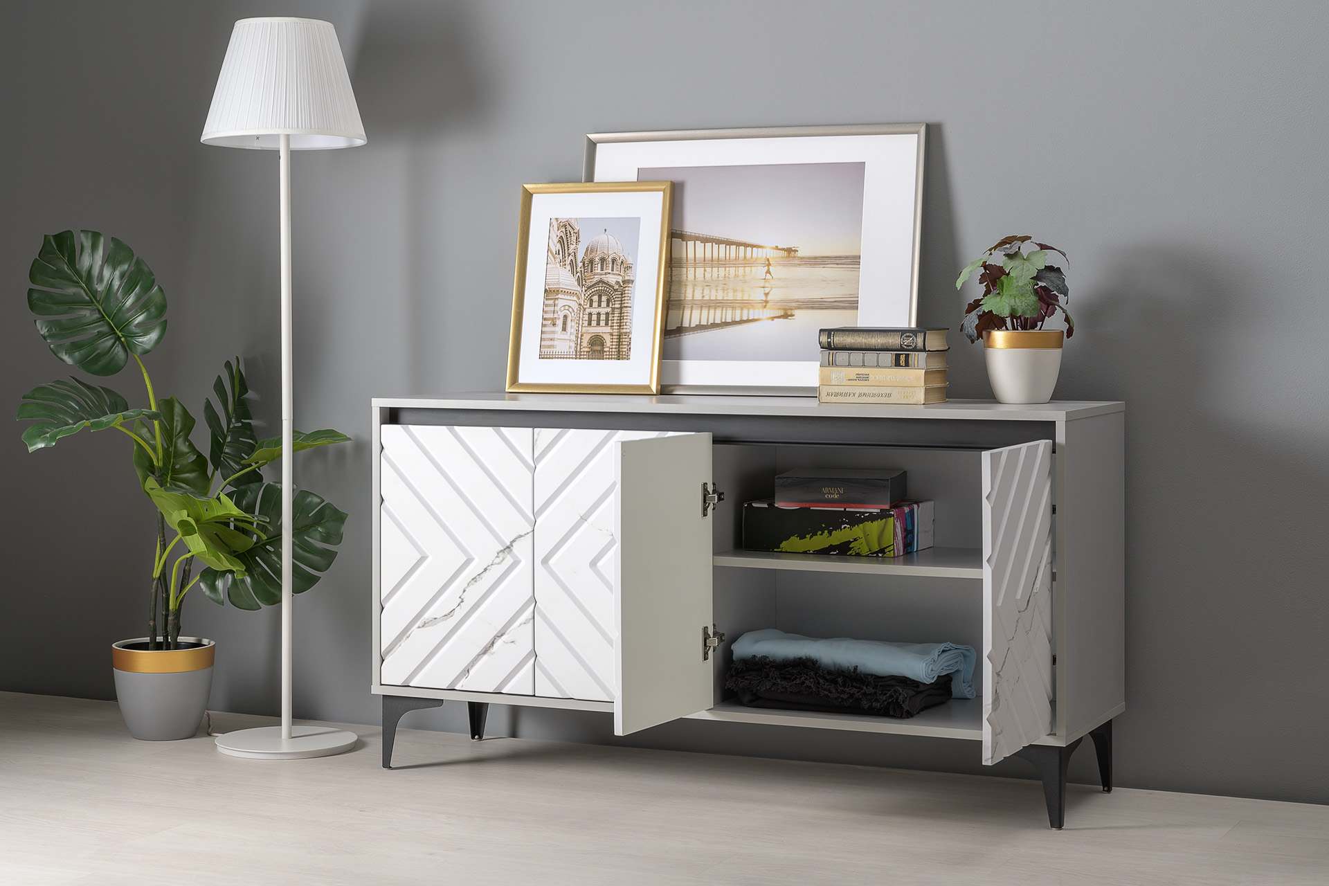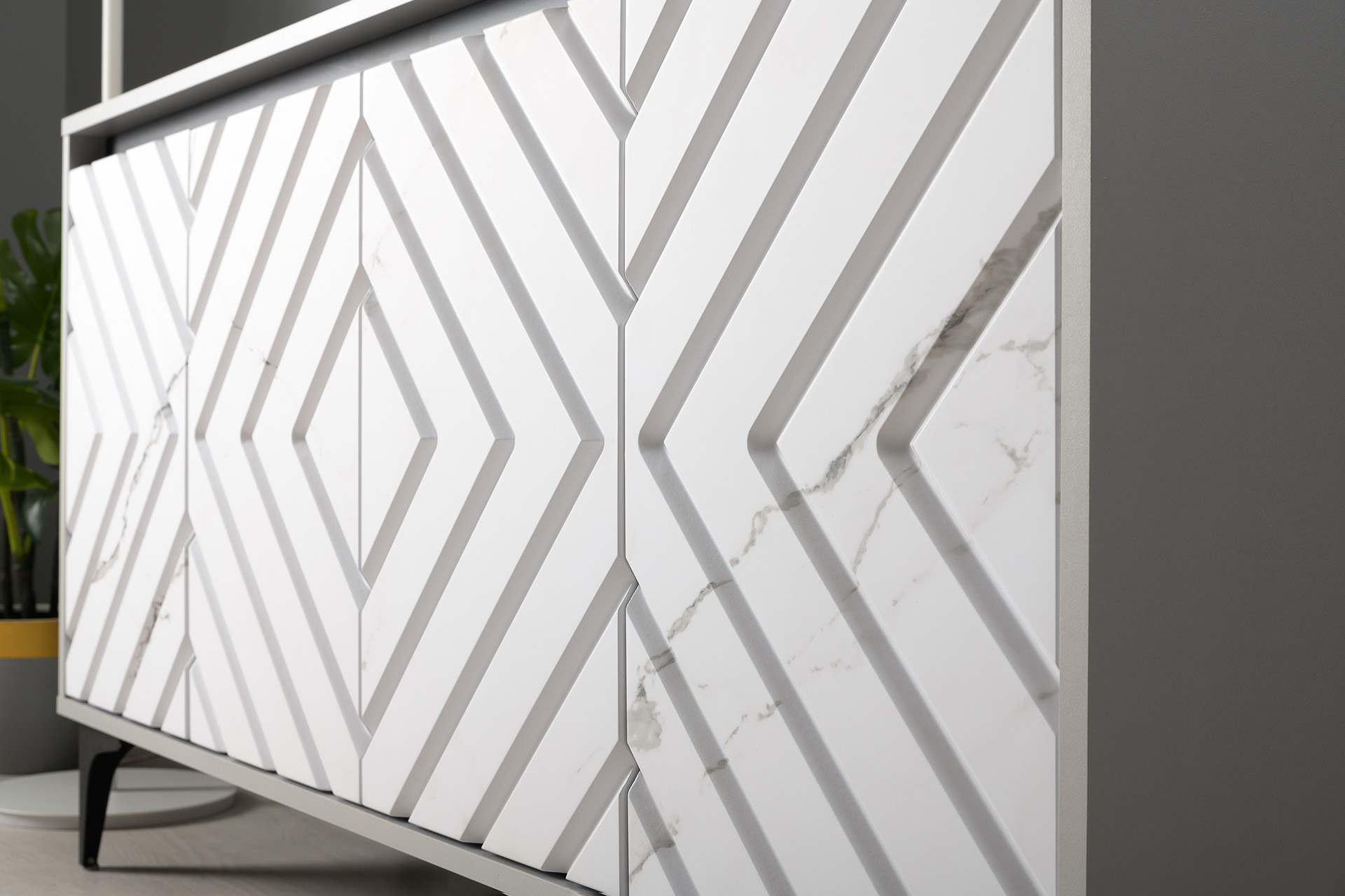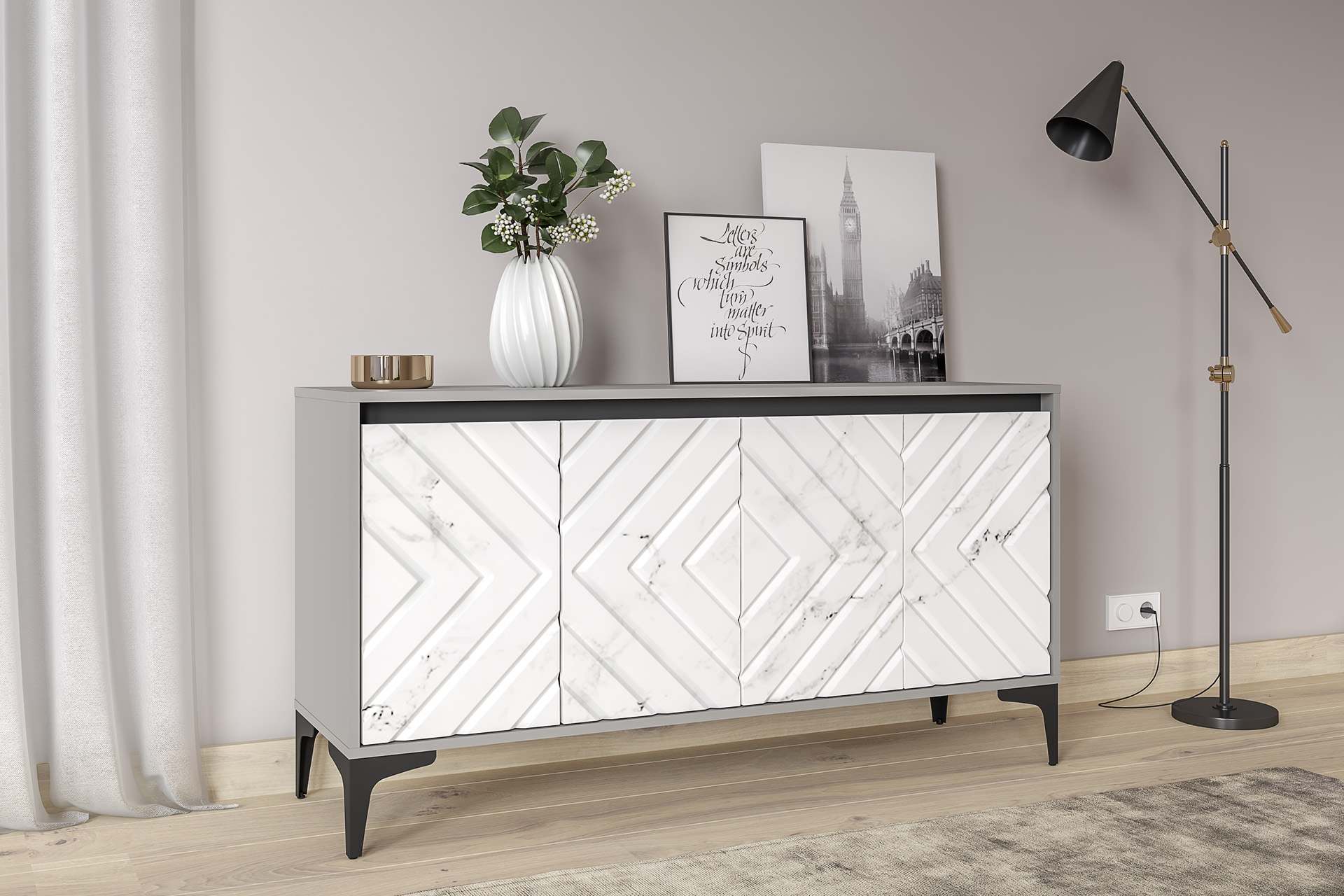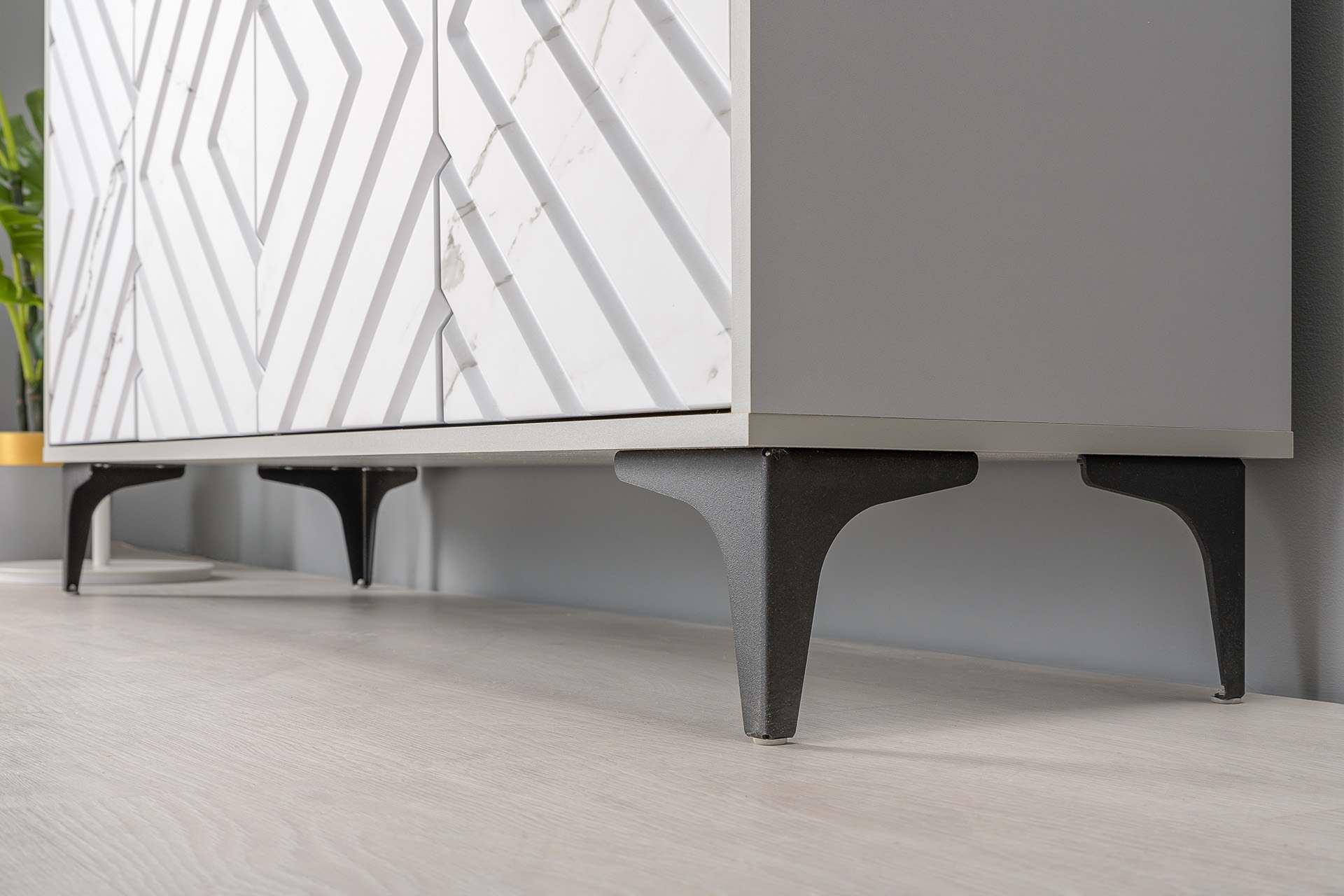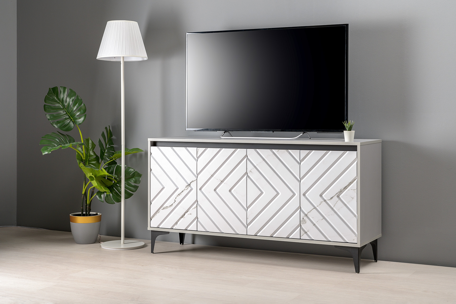 Тумба под ТВ 13.261.02 «Муар» Стальной Серый/Мрамор Белый софт