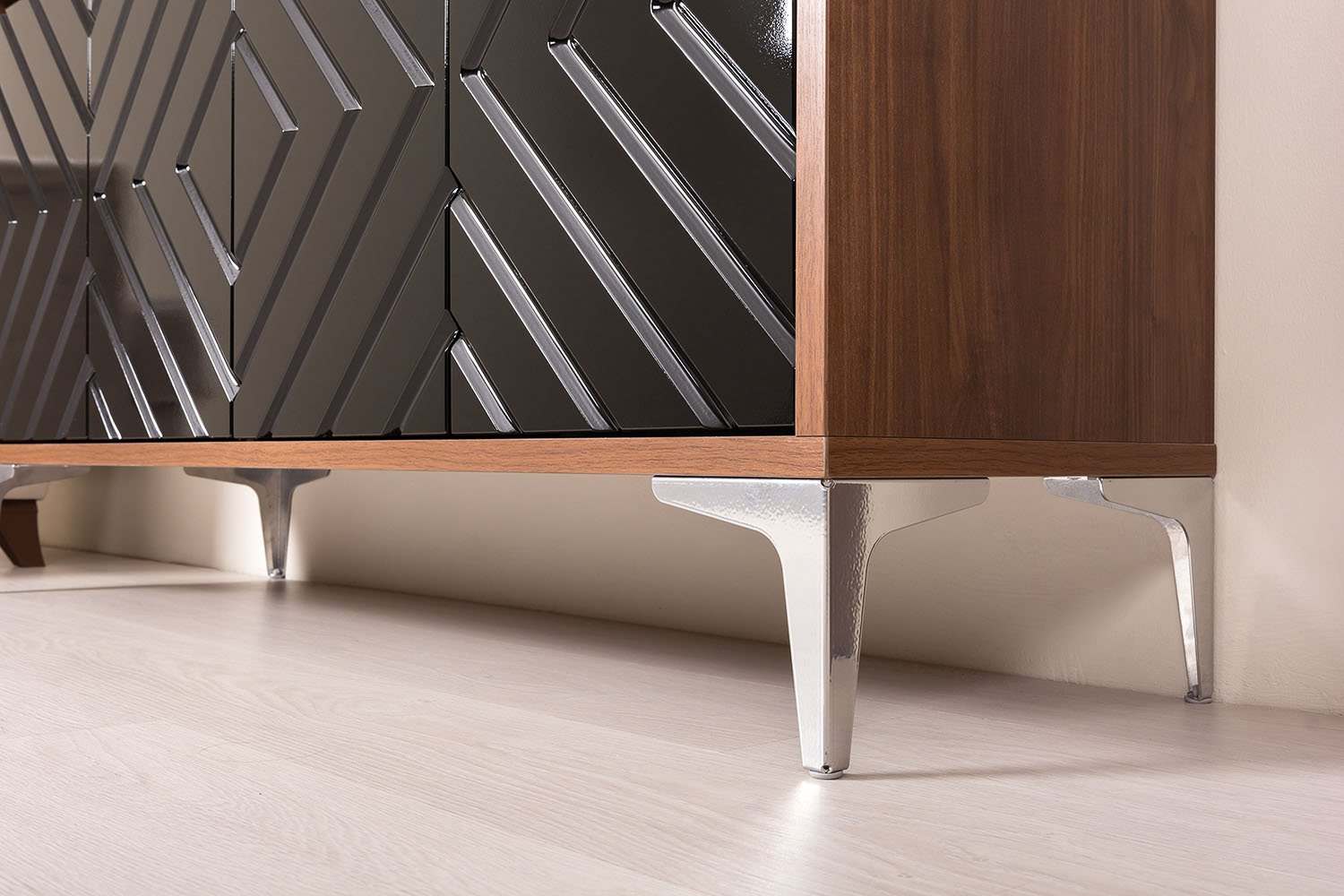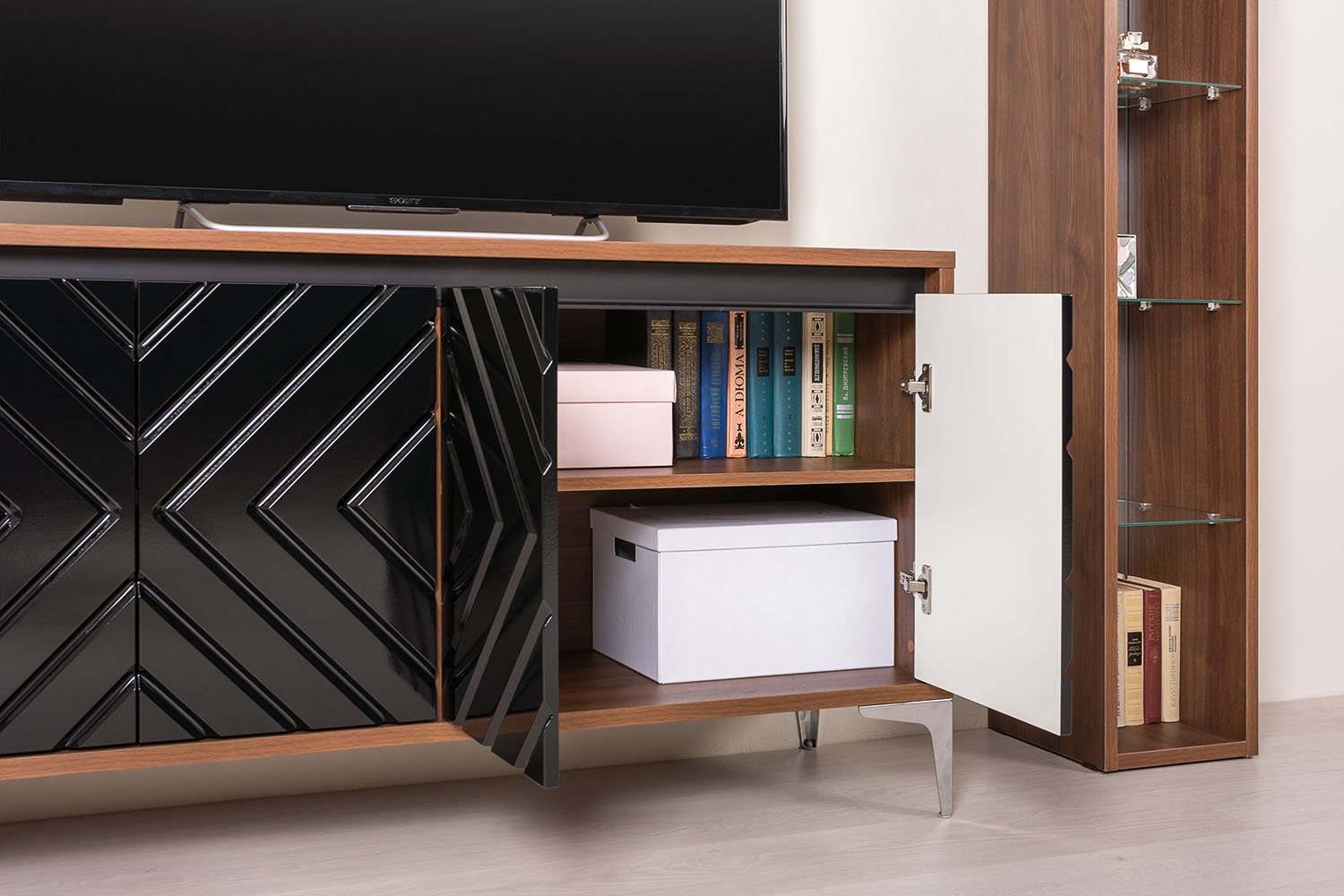 Тумба под ТВ 13.261 «Муар» Орех Селект каминный/чёрный глянец