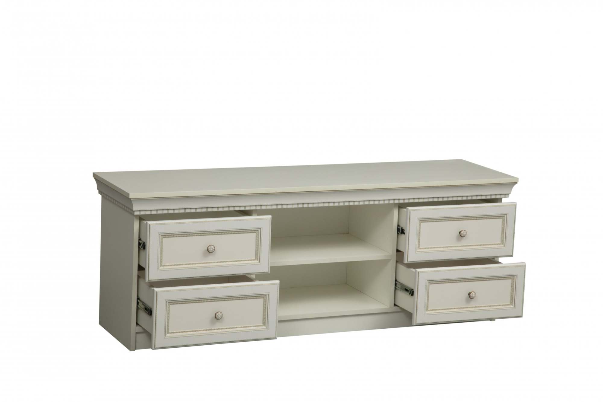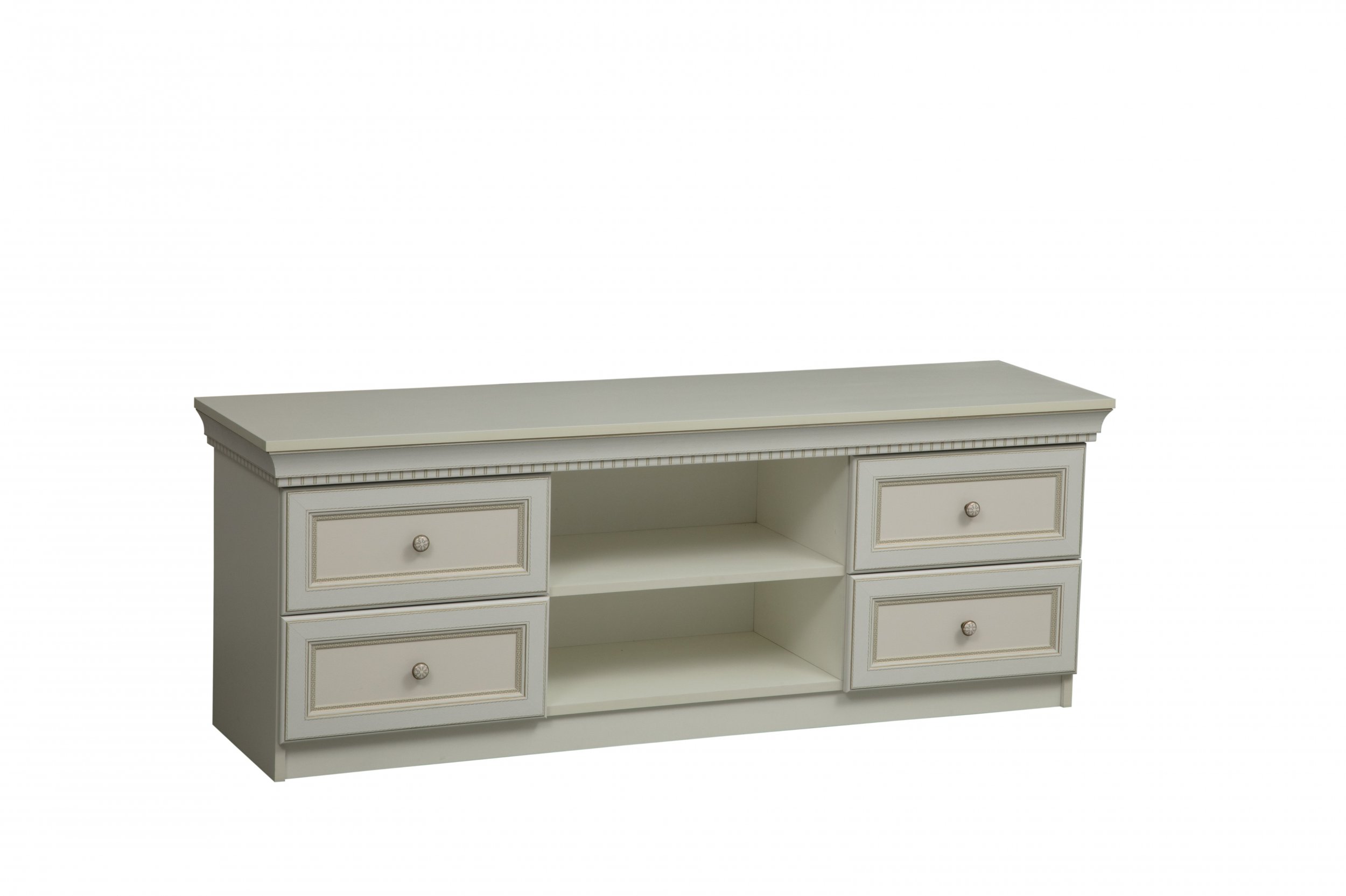 - Тумба под ТВ 40.05 «Эльмира» Белый/Белая кожа патина