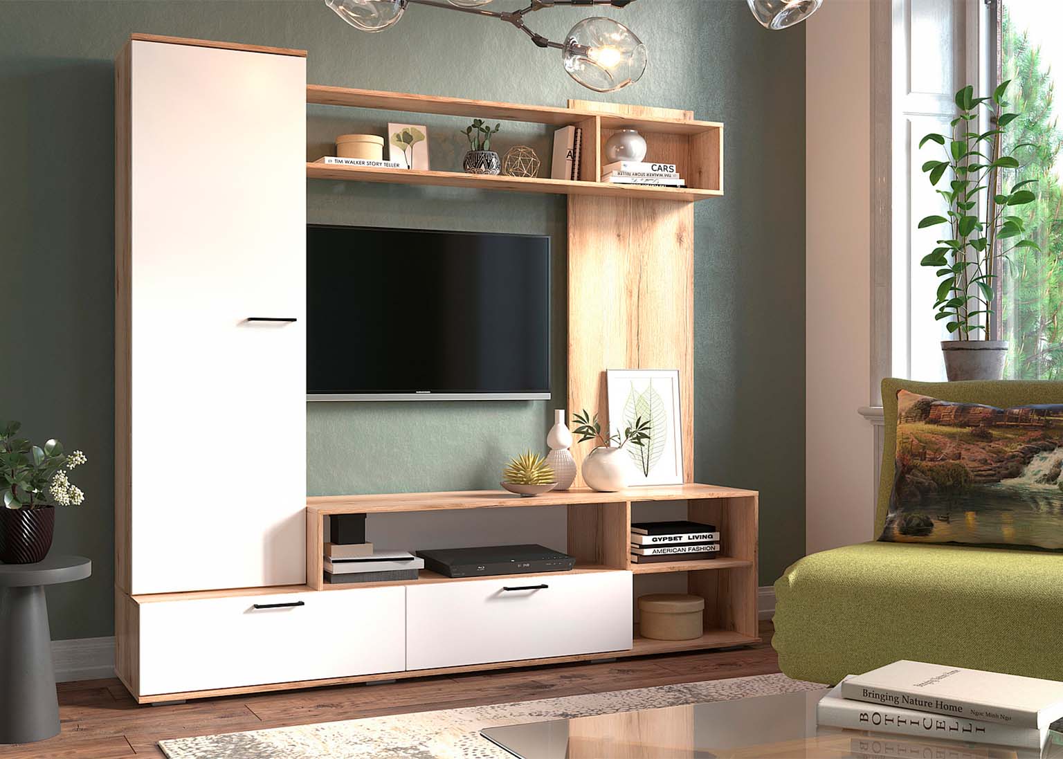 Тумба под ТВ «Номер 106» Дуб Делано/Белый