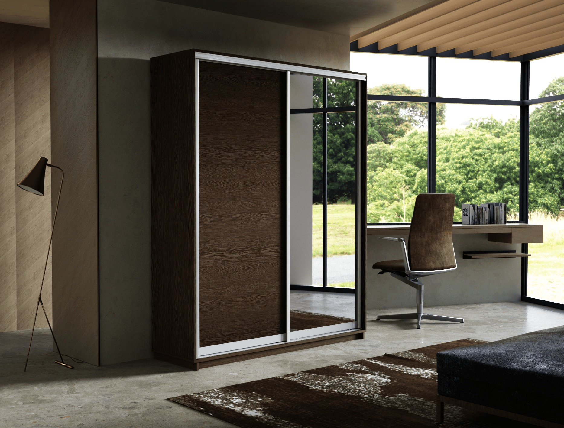 Шкаф-купе «Экспресс 45 Дуо» Медиум ДСП/Зеркало Венге, глубина 45 см