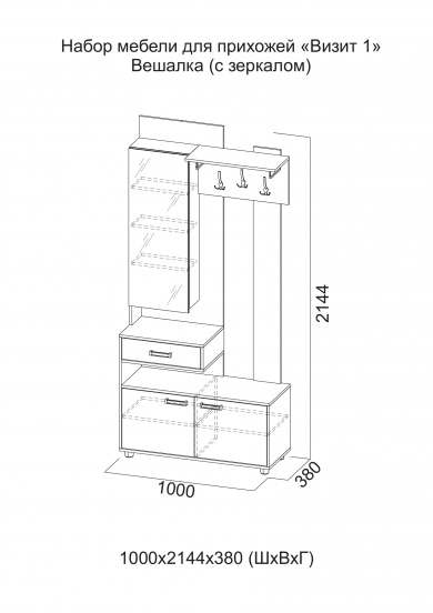 - Вешалка (с зеркалом) Серия 2 «Визит 1» Дуб Сонома/Сосна Джексон