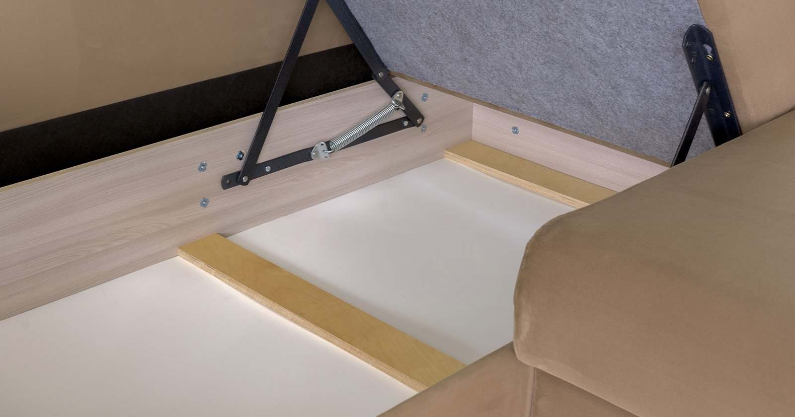 | Комплектация | Мягкий, На ножках, С ящиком для белья |